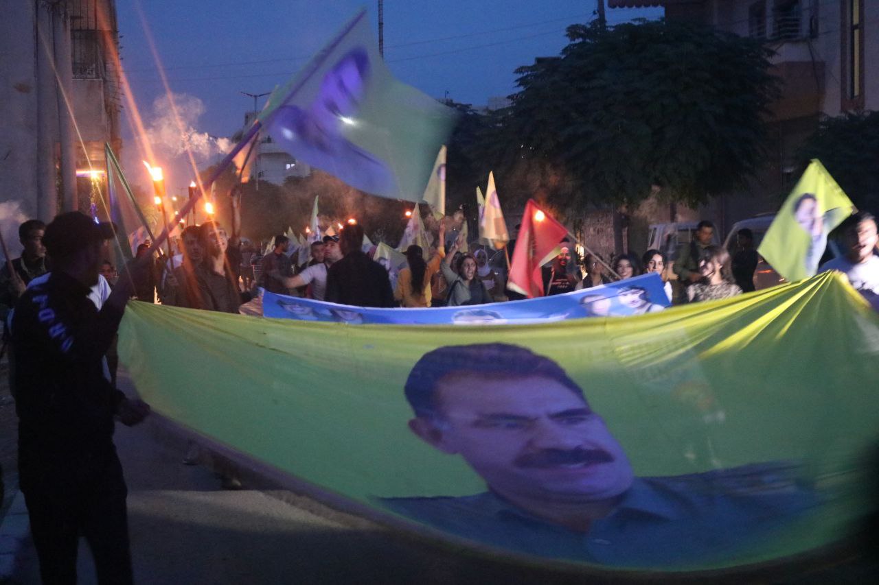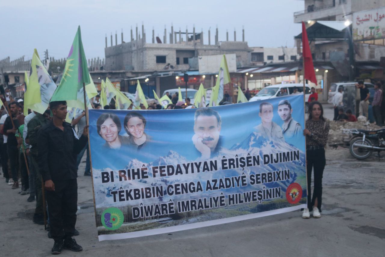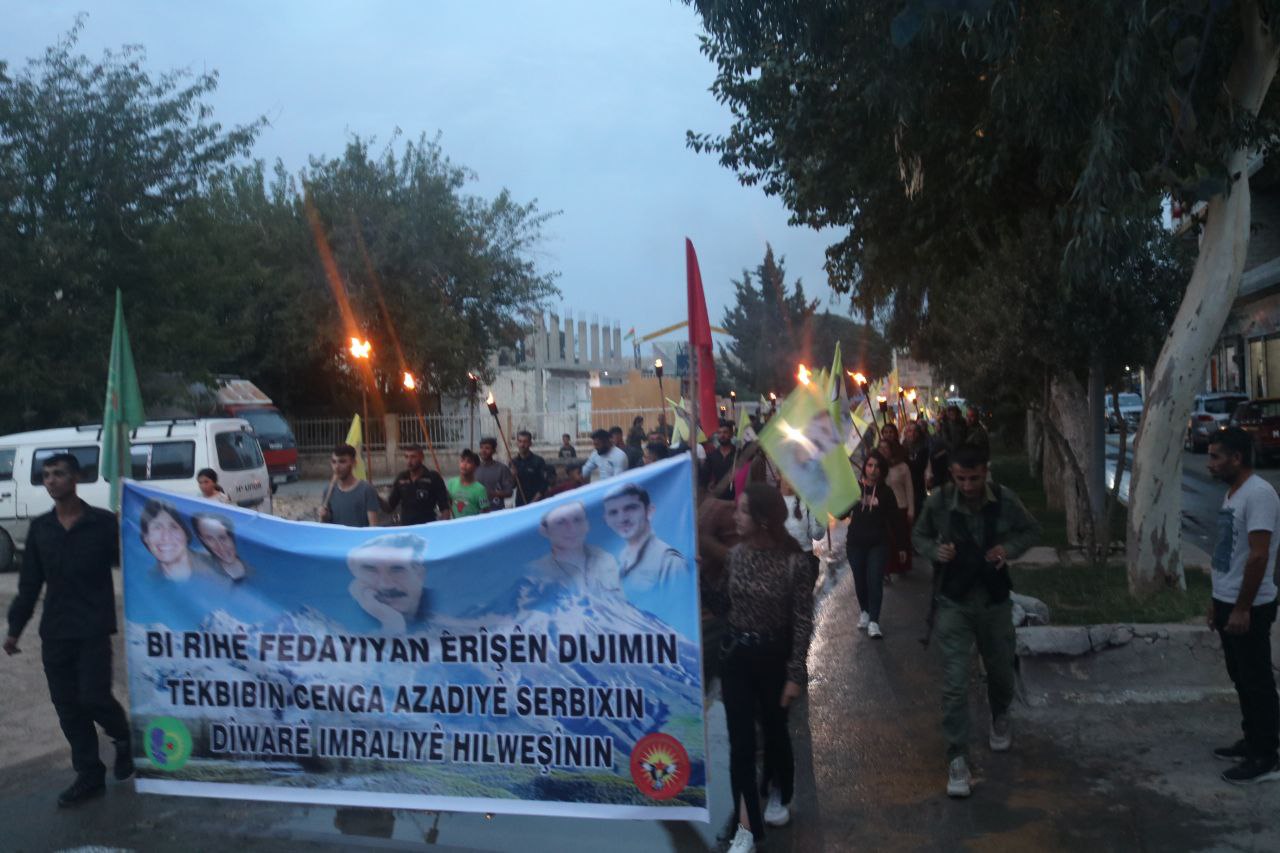 KOBANÊ- Önder Apo’ya yönelik uluslararası komploya karşı Kobanê’de düzenlenen meşaleli yürüyüşle protesto edildi. Suriye Devrimci Gençlik Hareketi öncülüğünde yüzlerce kişi taşıdıkları meşaleyle yürüdü. Önder Apo’nun posterleri taşınıp, sloganlar atıldı.