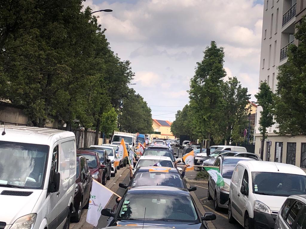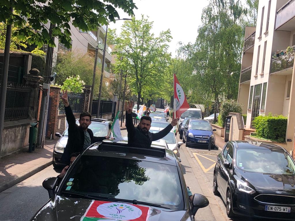 Fransa'nın Drancy bölgesinde Kürt Meclisi ve gençlik öncülüğünde Yeşil Sol Parti seçim konvoyu yapıldı