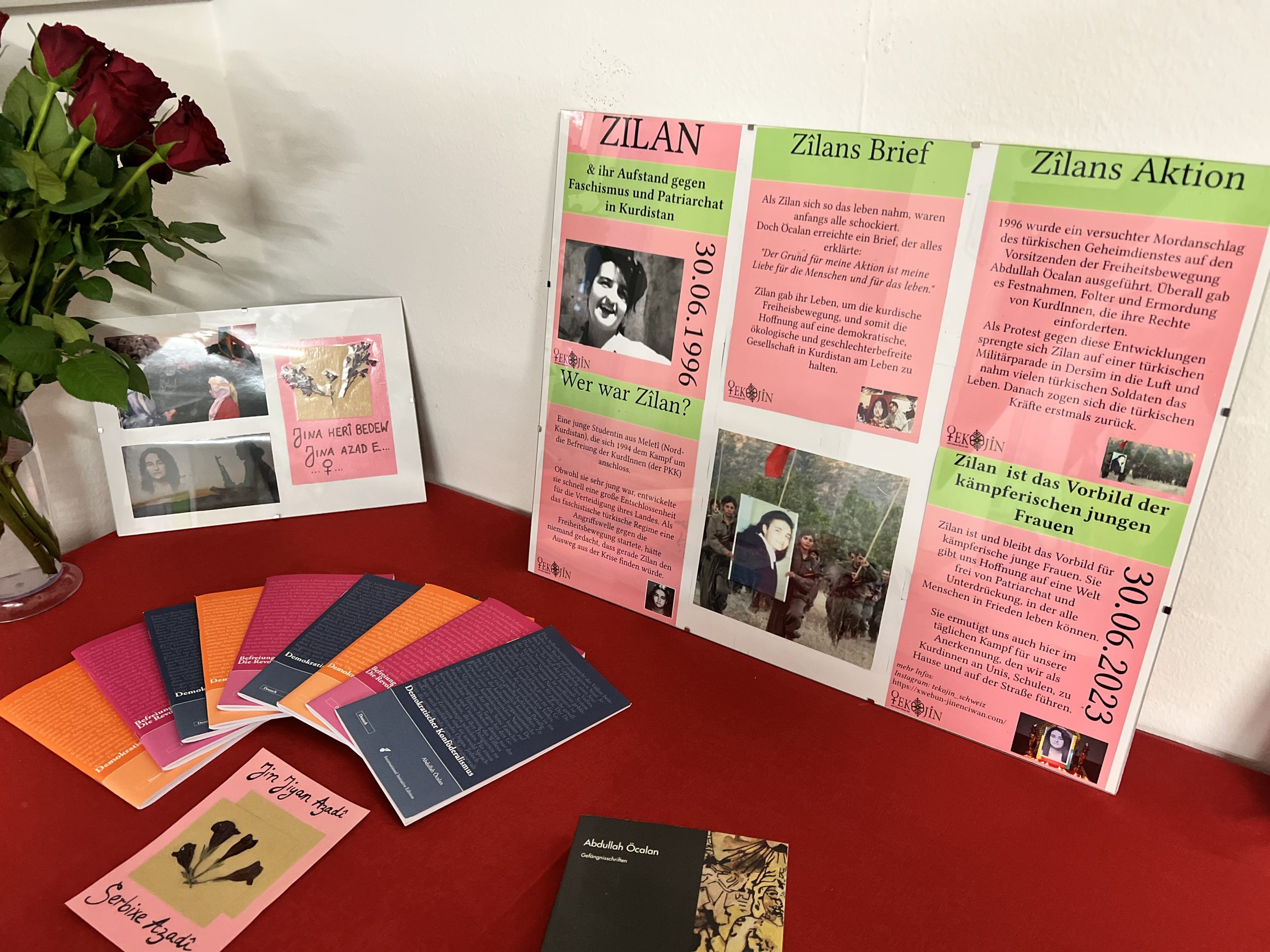 Aynı zamanda Önder APO’nun kitaplarının bulunduğu Önderlik köşesi ve Şehid Zilan’ın yaşamını ve eylemini anlatan sergi açıldı.