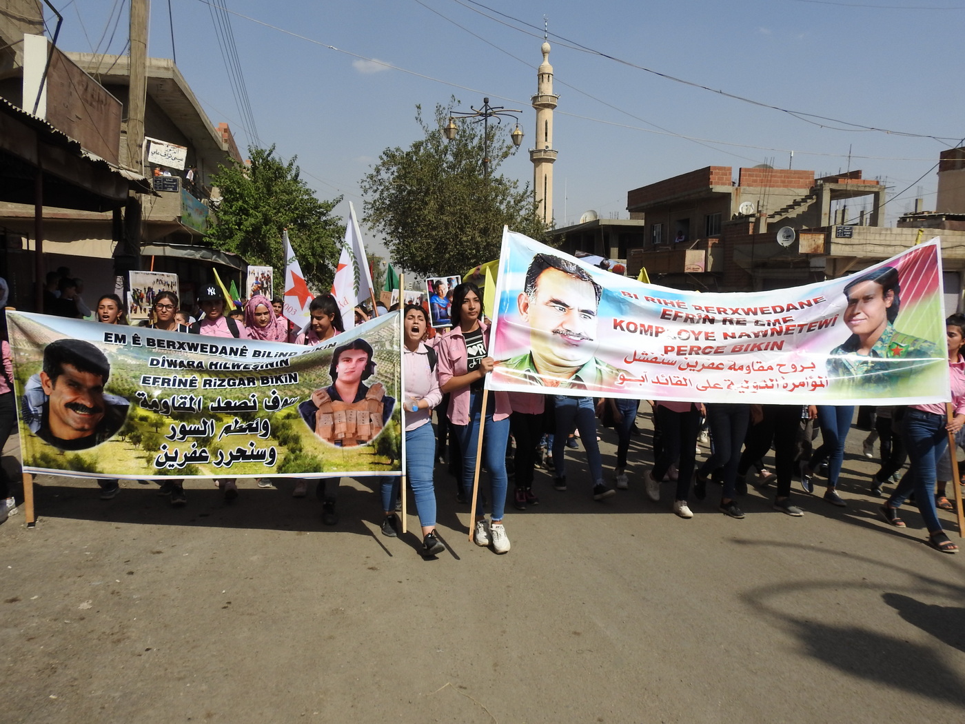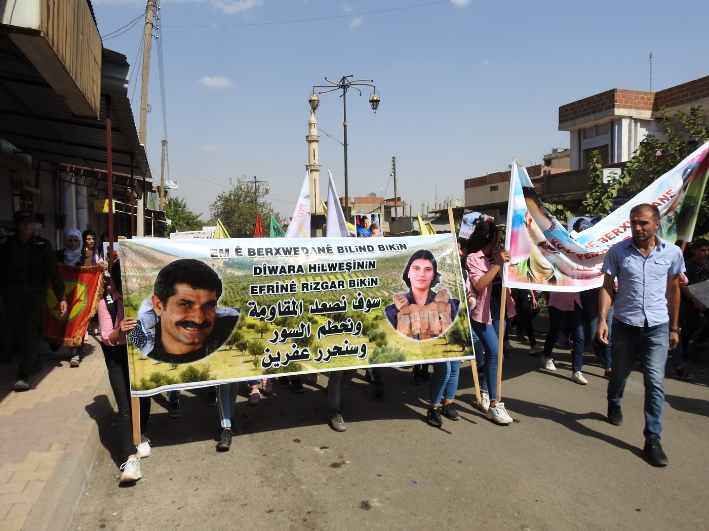 Meşa ku bi ruhê seferbertiyê hatibû lidar xistin û tê zarok, ciwan, dayîk û hemû civak cihê xwe di nav de girte, heta navenda bajarê berdewam kir. Li navenda bajar meş veguherî mitingê. Miting bi yek deqe rêzgirtin ji bo tevahî şehîdên şoreşê hate destpê kirin û derbarê berxwedaniya gelê Rojava axaftin hatin kirin. Ji gelek sazî û tevgeran daxuyaniyên şermezarkirina gefên dagirkeriyê hatin dayin.