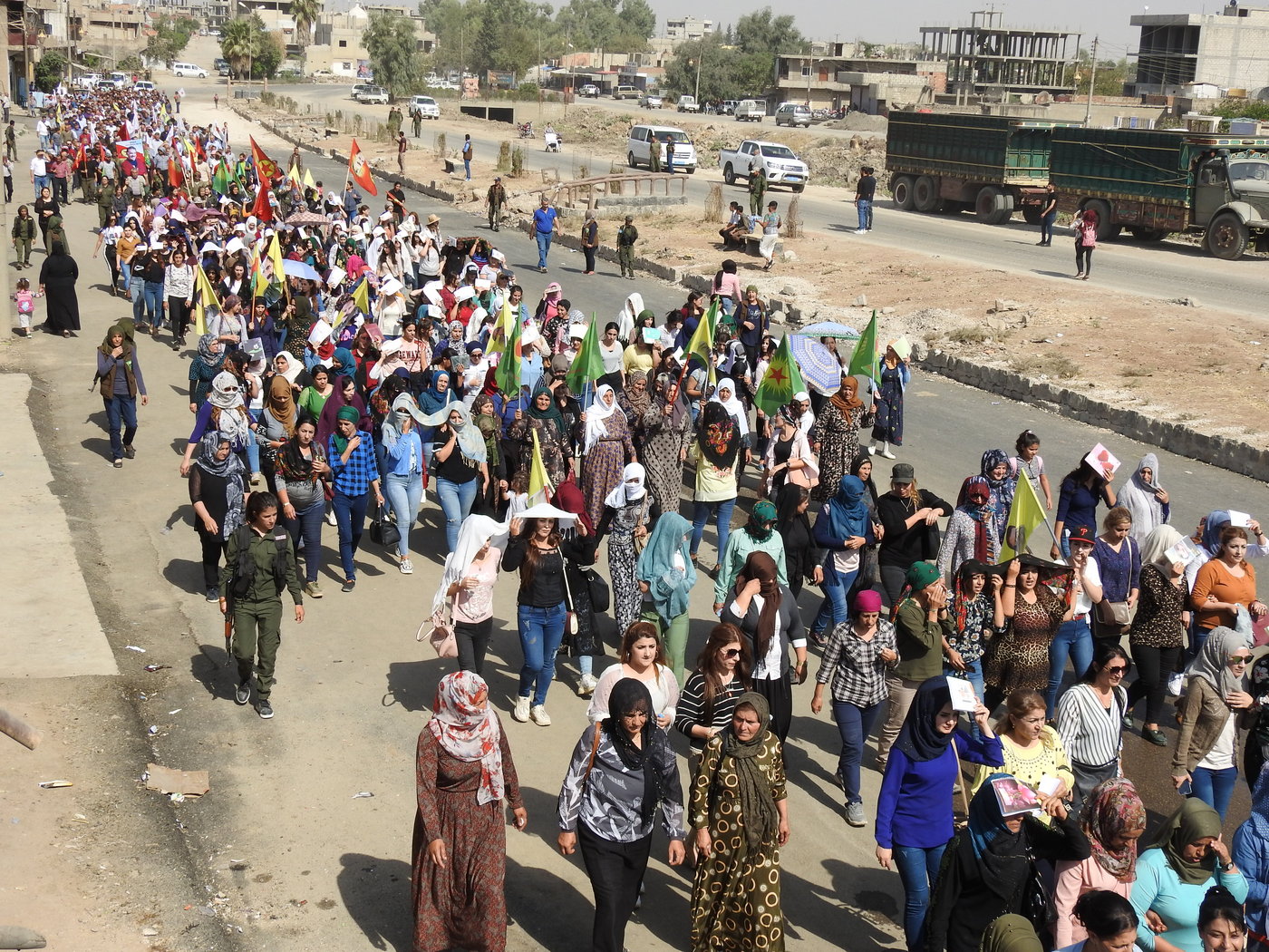 Hemû gelê Dêrikê ku îro dîkanê xwe venekiribûn, beşdarî çalakiya protestoyî bûn. Her wiha gelek sazî û tevger cihê xwe di nav meşê de girtin. Xwendekarên Dêrikê jî bi unîformayên xwe ê dibistanê di rêzên destpêkê yên meşê de cihê xwe girtin.