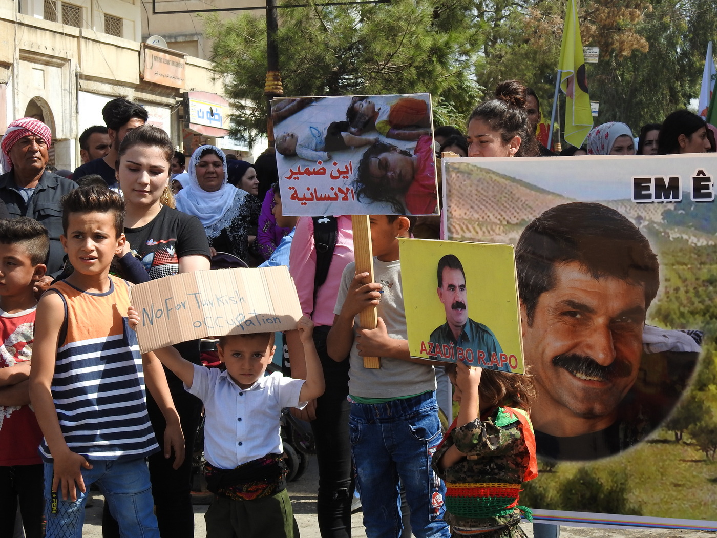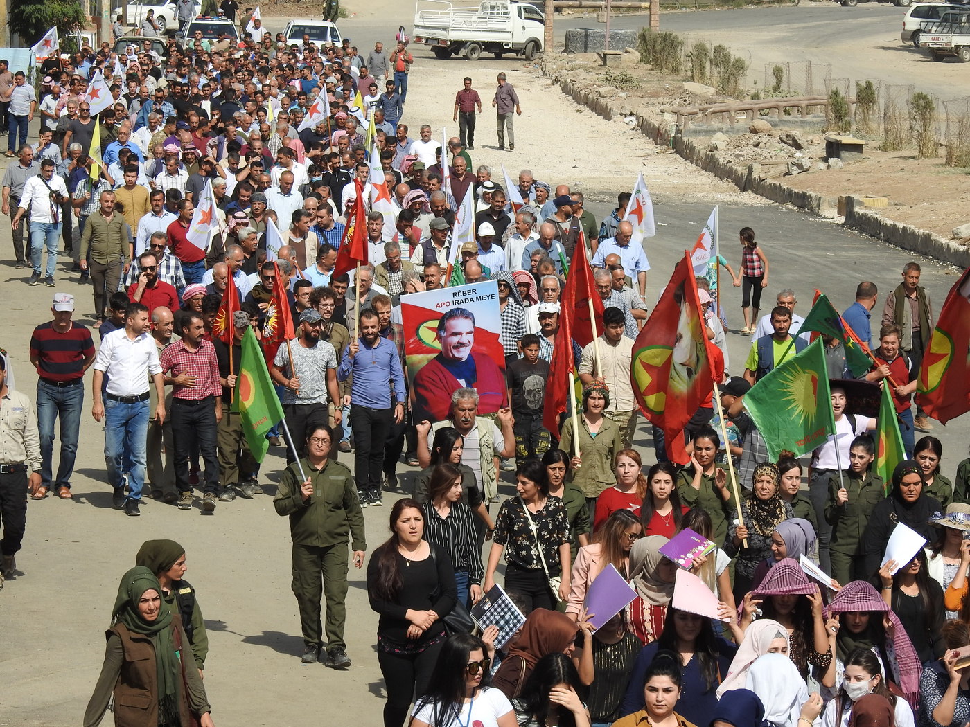 Gelê Dêrikê bi dirûşmeyên wek “Bijî Berxwedana Rojava”, “Bijî Serok APO”, “Bimre Dagirkerî”, û “Terorist Erdogan” nêrazîbûnê xwe li dijî gefên dewleta tirk a dagirker ku dixwaze herêmê bixe bin desthilatdariya xwe nîşan dan.