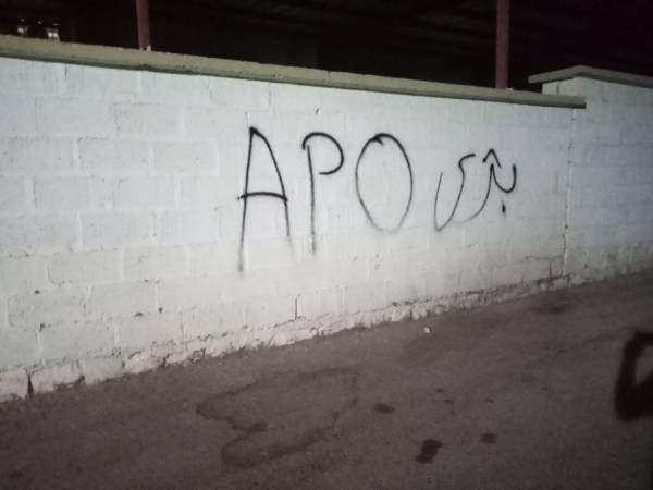 Ciwanan li ser dîwar nivîsên ‘Bijî Apo’, ‘Bijî Berxwedana YPG/YPJ’, ‘Bimre Xiyanet’ û ‘Pêwîstiya Rojava bi me hemûyan heye werin em bi hev re welatê xwe biparêzin’ hildan.