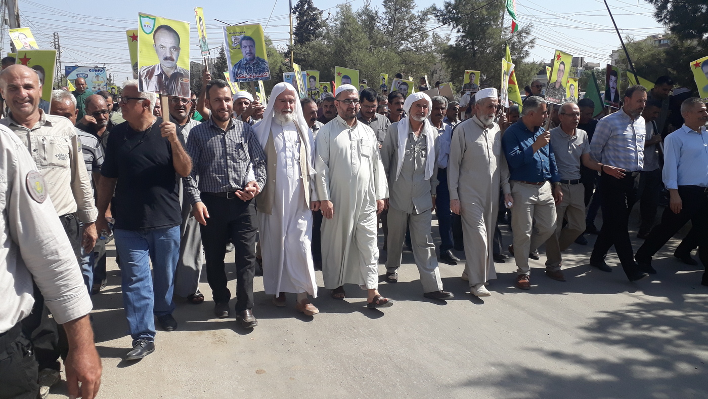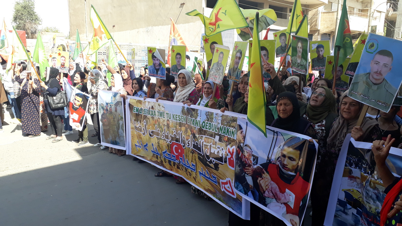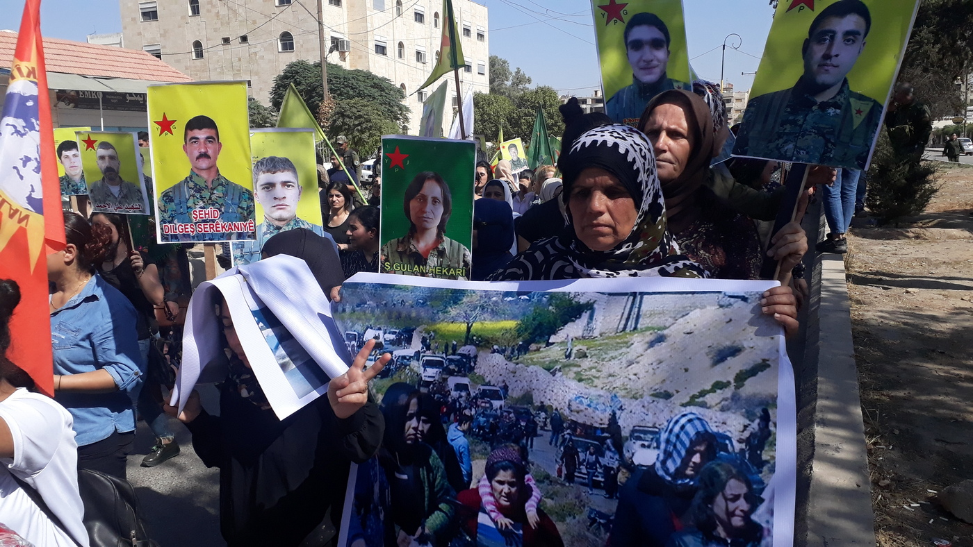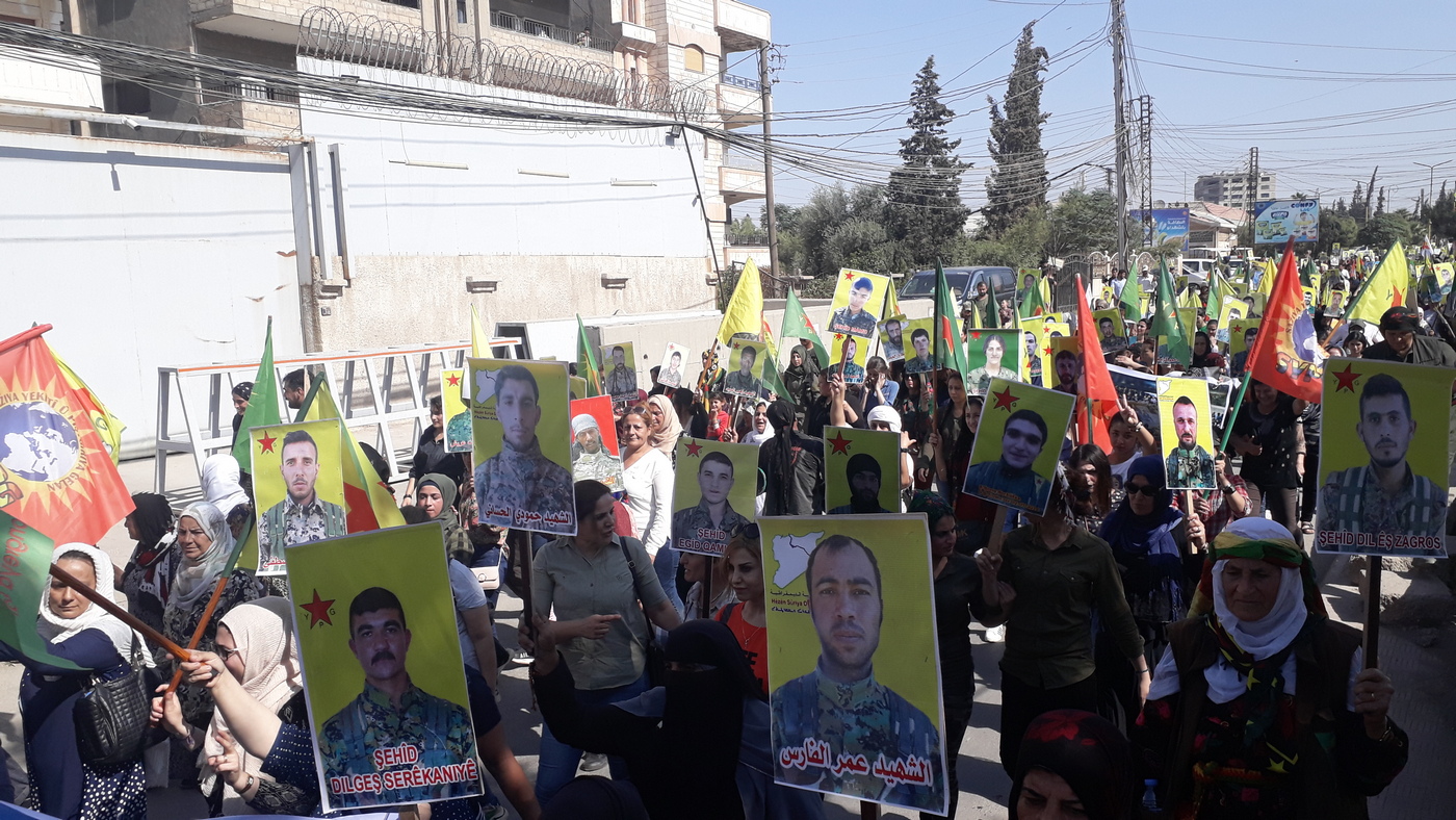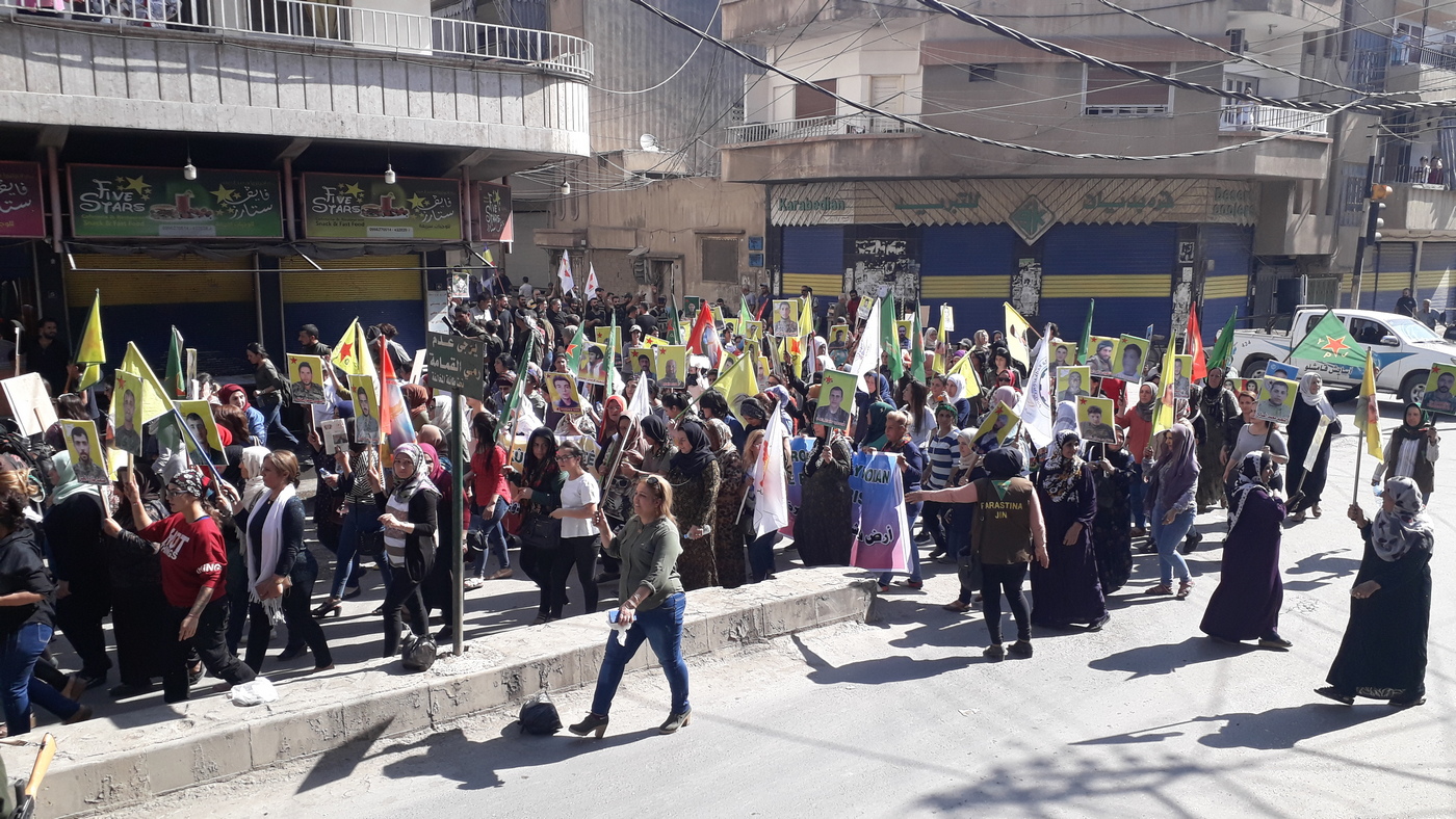 QAMIŞLO – Bi hezaran gelê Qamişlo li dijî êrîşên dewleta tirk a dagirker daketin qadan û peyama parastina axa xwe dan. Di saetên sibê de gel li dagirkeriya dewleta tirk gelê Qamişlo ji 7 heta 70 salî li dewra Şerqî kombûn. Bi dirûşmeyên berxwedanê gelê Qamişlo li tevahî bajar meşiyan. Di çalakiyê de sloganên wek “Bijî Berxwedan Rojava/Qamişlo”, “BiJî Serok APO”, “Bimre dagirkerî” hatin berz kirin.