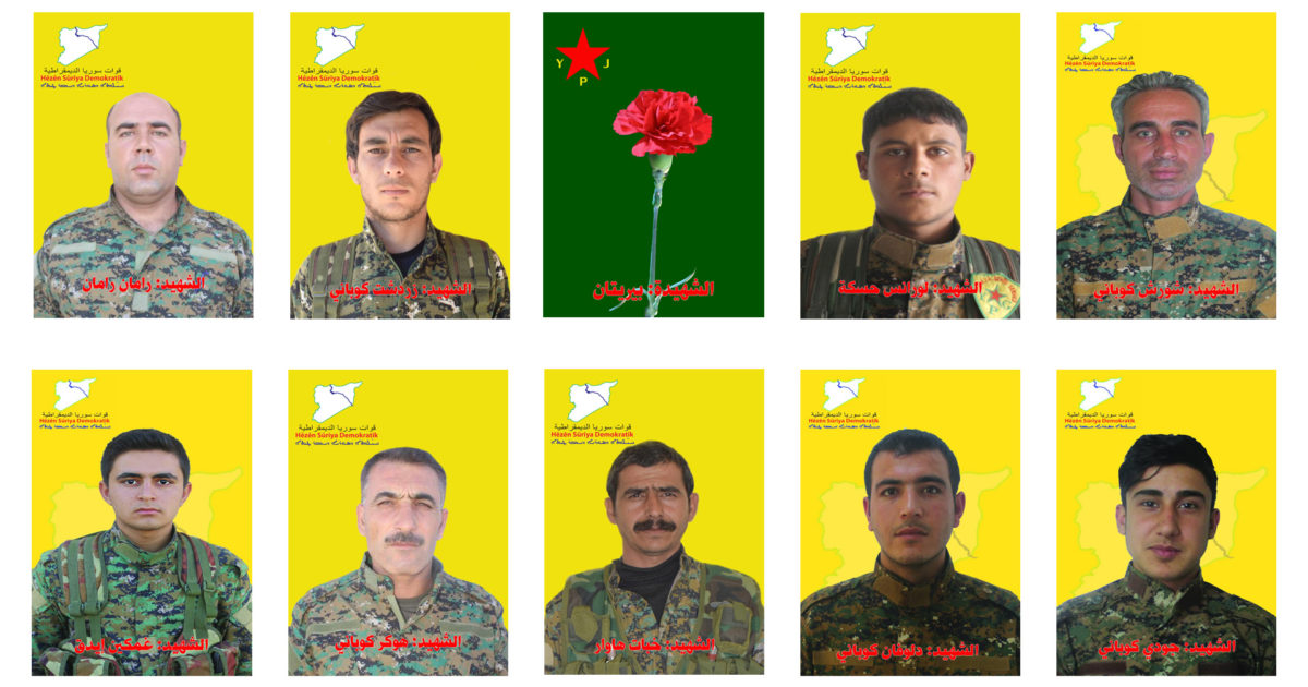 NAVENDA NÛÇEYAN – Navenda Ragihandin û Çapemeniyê ya QSD`ê bi daxuyaniyekê nasnameya 10 şervanên xwe yên ku di berxwedana dîrokî ya li dijî êrîşên dagirkeriya dewleta Tirk ên li ser Bakur û Rojhilatê Sûriyê şehîd bûne, eşkere kir.
