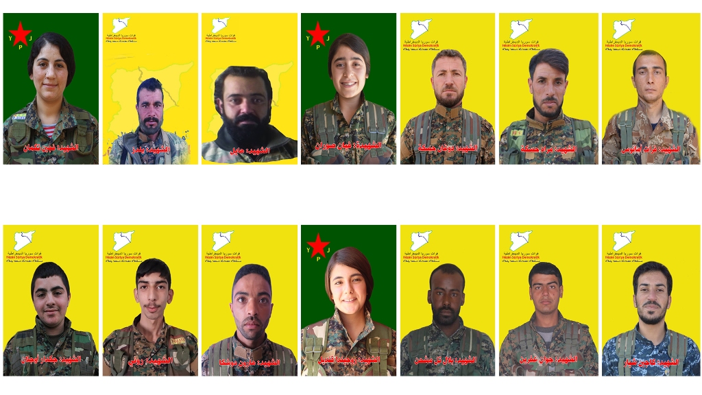 NAVENDA NÛÇEYAN – Navenda Ragihandin û Çapemeniyê ya QSD`ê bi daxuyaniyekê ku li ser malpera xwe ya fermaî belav kir, nasnameyên 12 şervanên QSD û YPJ`ê ku di Berxwedana Rûmetê de û 2 şervanên ku li Dêra zorê şehîd bûbûn, eşkere kirin.
