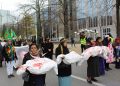 Di meşa ku seat 13:30an li ber Gare du Nord destpêkiriyê de ala YPG û YPJ û flamayên Rêberê Gelê Kurd Abdullah Ocalan hatin hilgirtin. Di meşê de dagirkirina Rojava hat şermezarkirin û ji bo piştgiriya Berxwedana Rûmetê jî diruşme hatin avêtin. Meşa ku du seat domiya, li ber qada Gare Centralê bi axaftinên berdevkên saziyan re hat bidawîkirin.