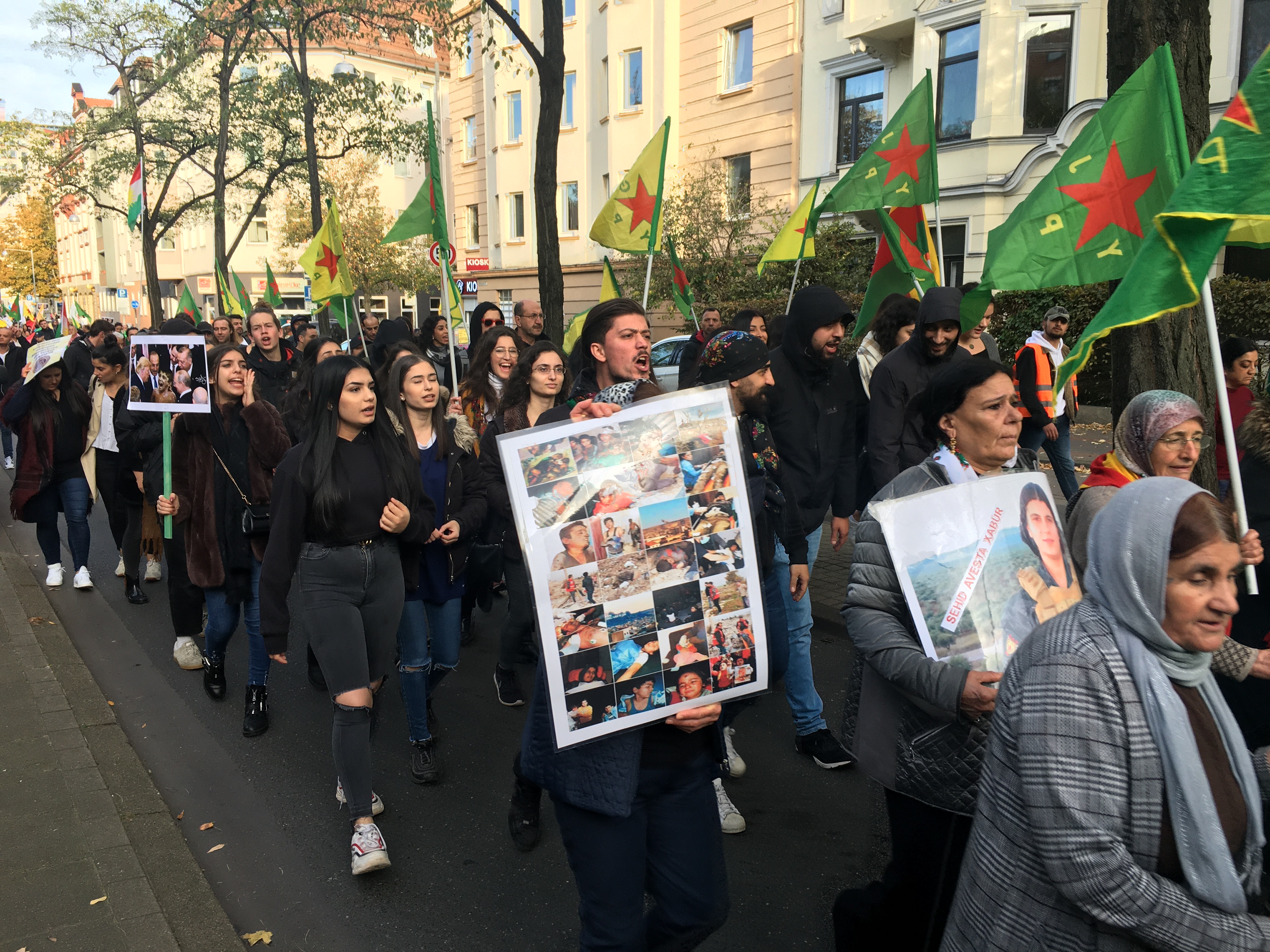 HANNOVER – Li bajarê Hannoverê (Elmanya) gelê Kurdistanî bi hejmara 500 kesan daketin qadan. Êrîşên dewleta Tirk a faşîst û çeteyên wan ên hov li ser gelê Rojava hatin şermezarkirin û bi taybetî jî mijara meşê kampanyaya #WomenDefendRojava bû. Di axaftina tevgera jin ên Enternasyonlîst de revandina şervana jin a YPJê Çîçek Kobanê hat ser ziman. Çeteyên ereb ên girêdayî diktator Erdogan wê bi dîl girtine û jiyana wê ketiye xeteriyek mezin. Ji bo wê daxwaza wan piştgiriya dewletên navnetewî û NY bû ku pêşiya vê dagirkeriyê û qetlîama li ser Rojava were girtin.