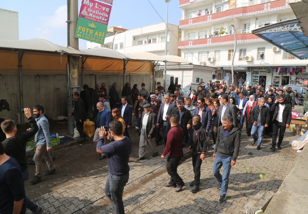 Wekîlên HDP’ê yên Şirnexê Nûran Imîr, Hasan Ozguneş û Huseyîn Kaçmaz û hevşaredar Mehmet Zirig û Bêrîvan Kutlu jî di nav de gelek kes li Xaçerêyê hatin cem hev.