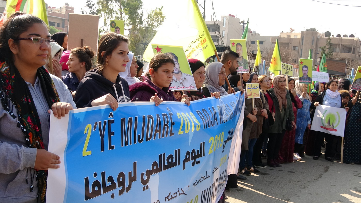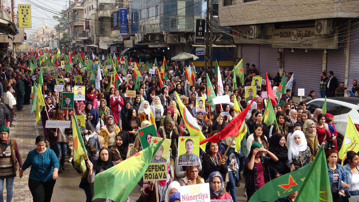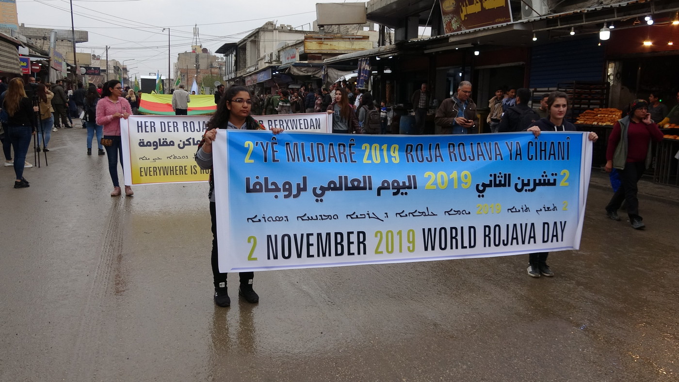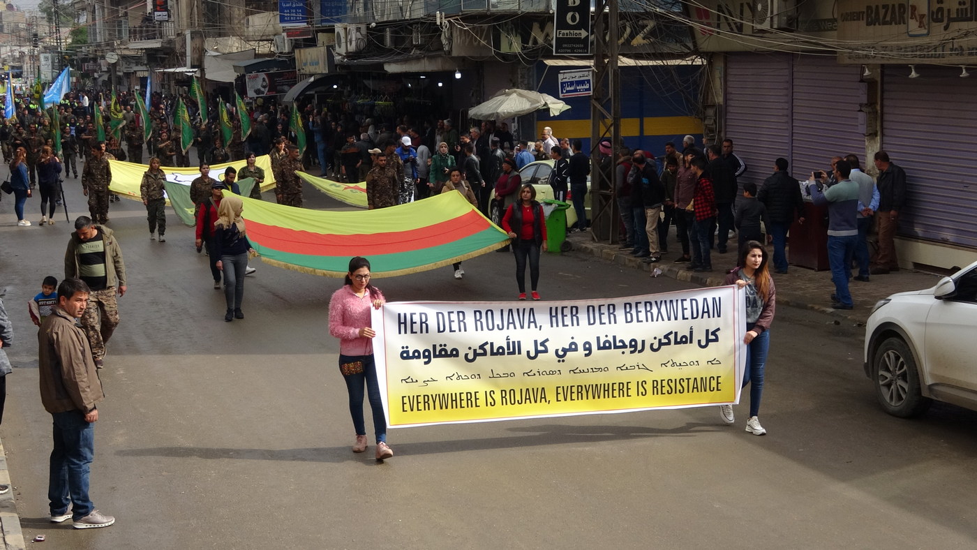Bi deh hezaran şêniyên kantona Qamişlo bi wesîleya Roja Cîhanî ya Rojava daketin qadan û gotin: "Her der Rojava, her der berxwedan e."
