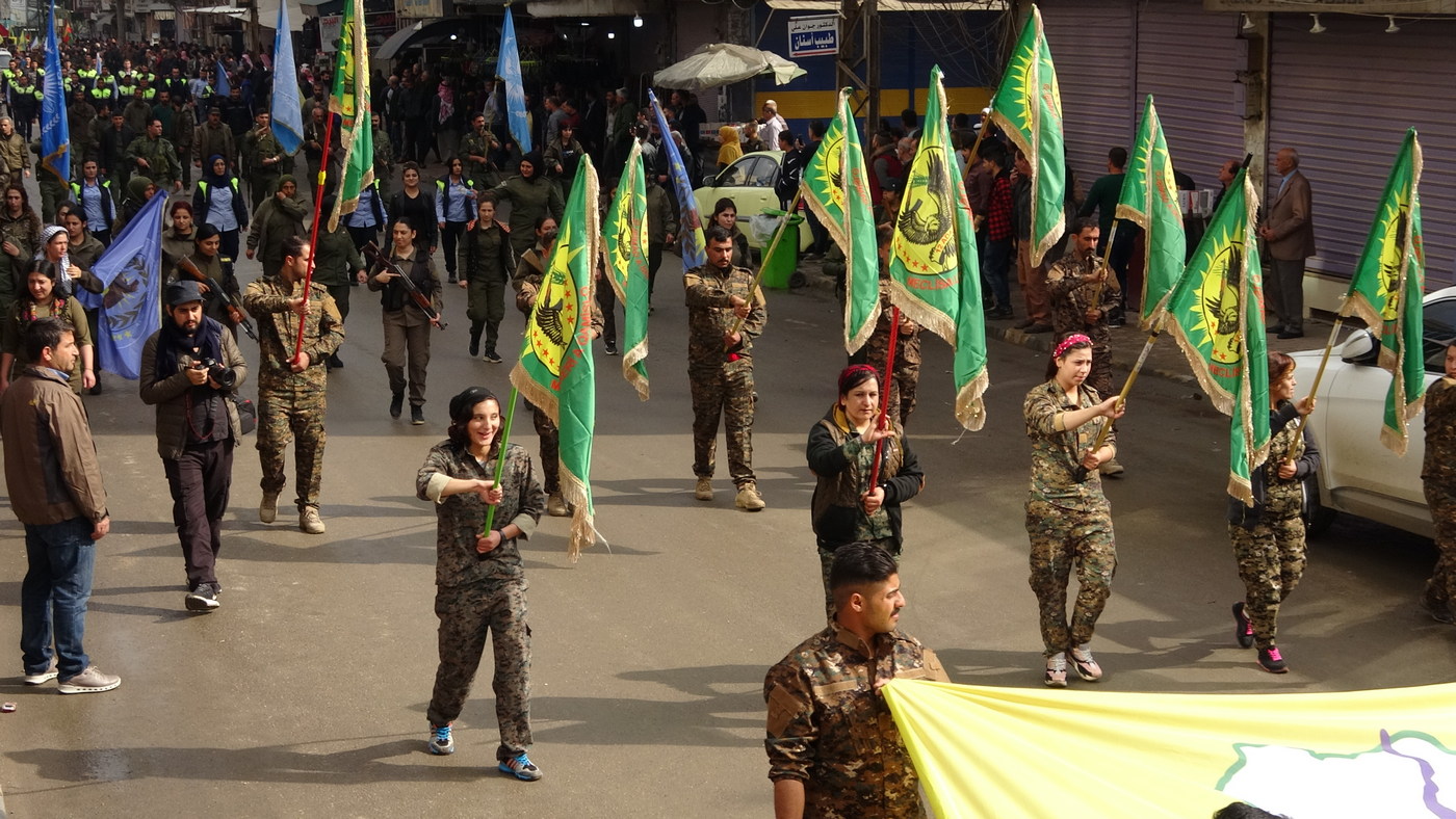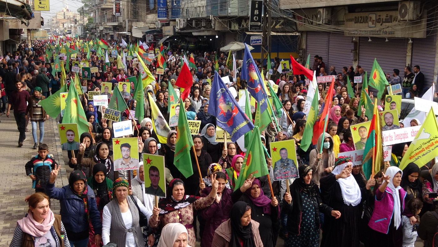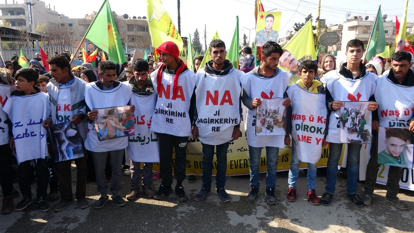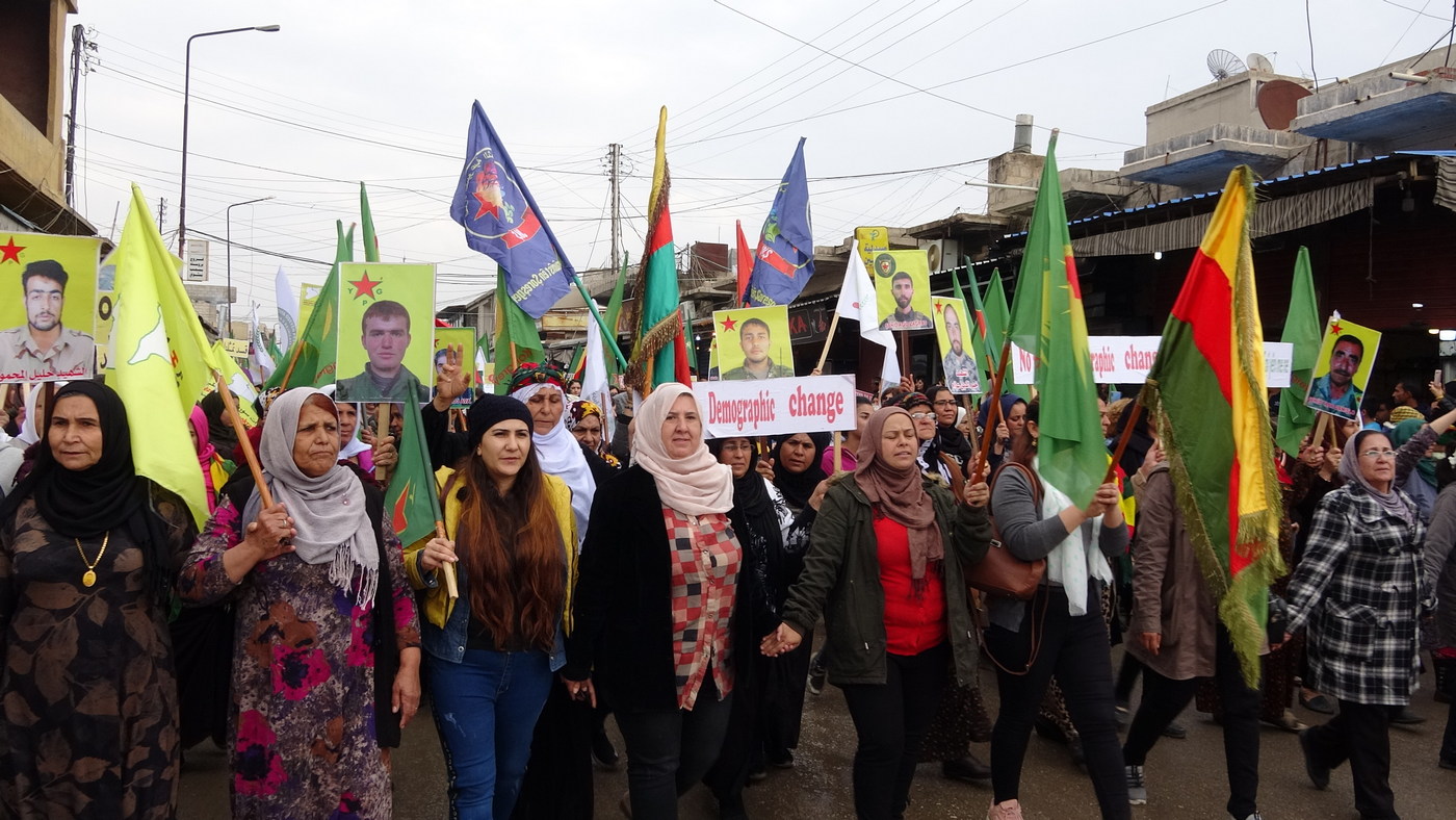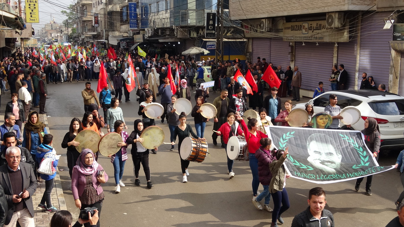 Bi deh hezaran şêniyên kantona Qamişlo bi wesîleya Roja Cîhanî ya Rojava daketin qadan û gotin: "Her der Rojava, her der berxwedan e."
