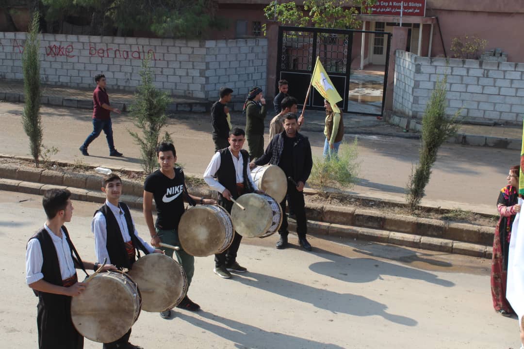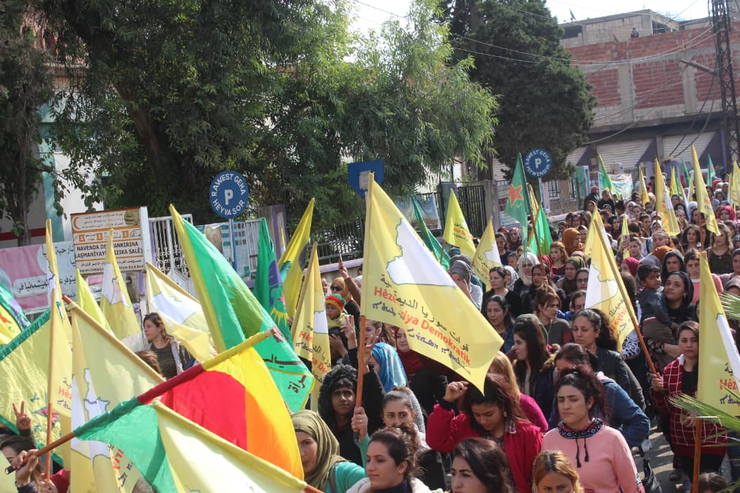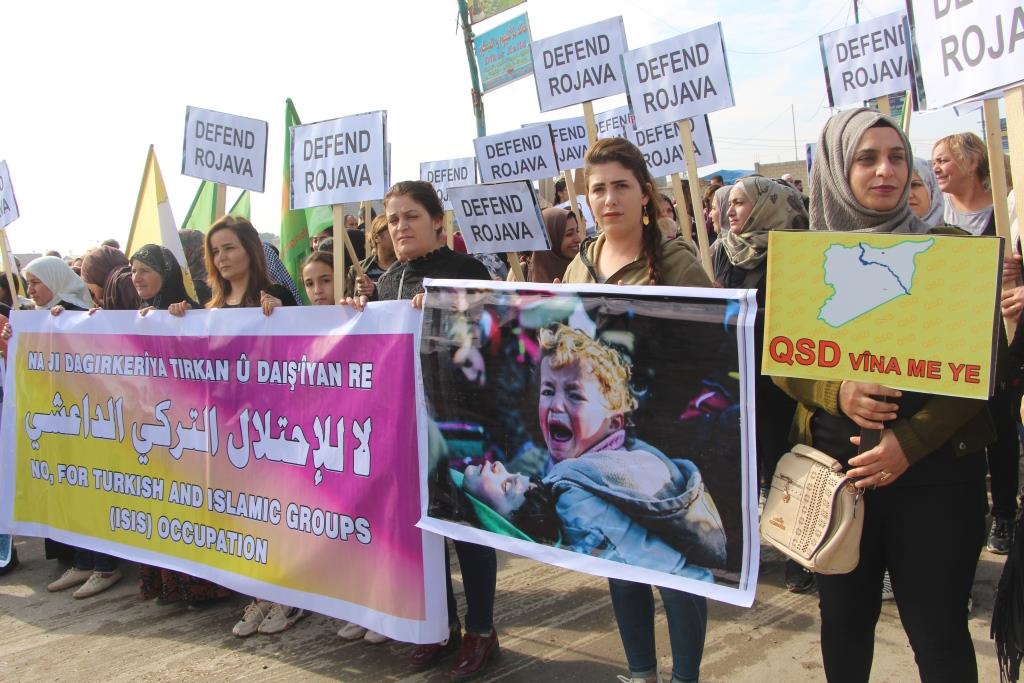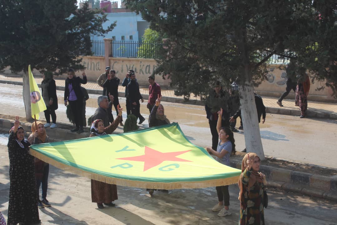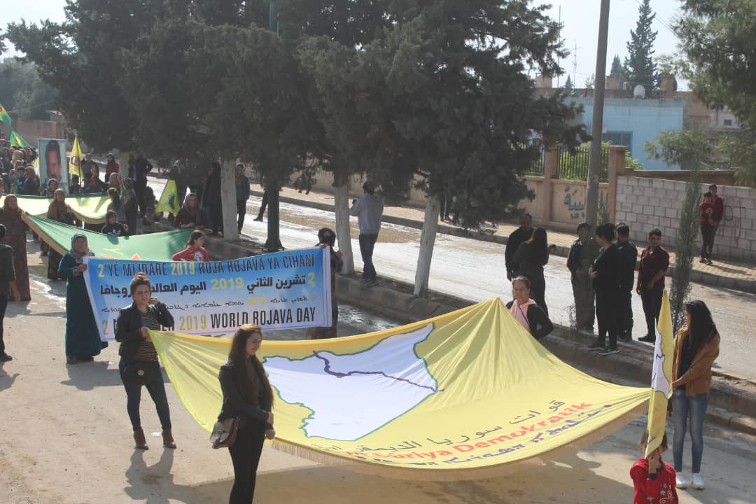 Da ku piştgiriya Roja Cîhanê ya Rojava bikin, bi hezaran şêniyên herêma Dirbêsiyê tevî beşdariya rûspiyên êlên Ereb, partiyên siyasî, saziyên civaka sivîl daketin qadan û meşek li dar xist.