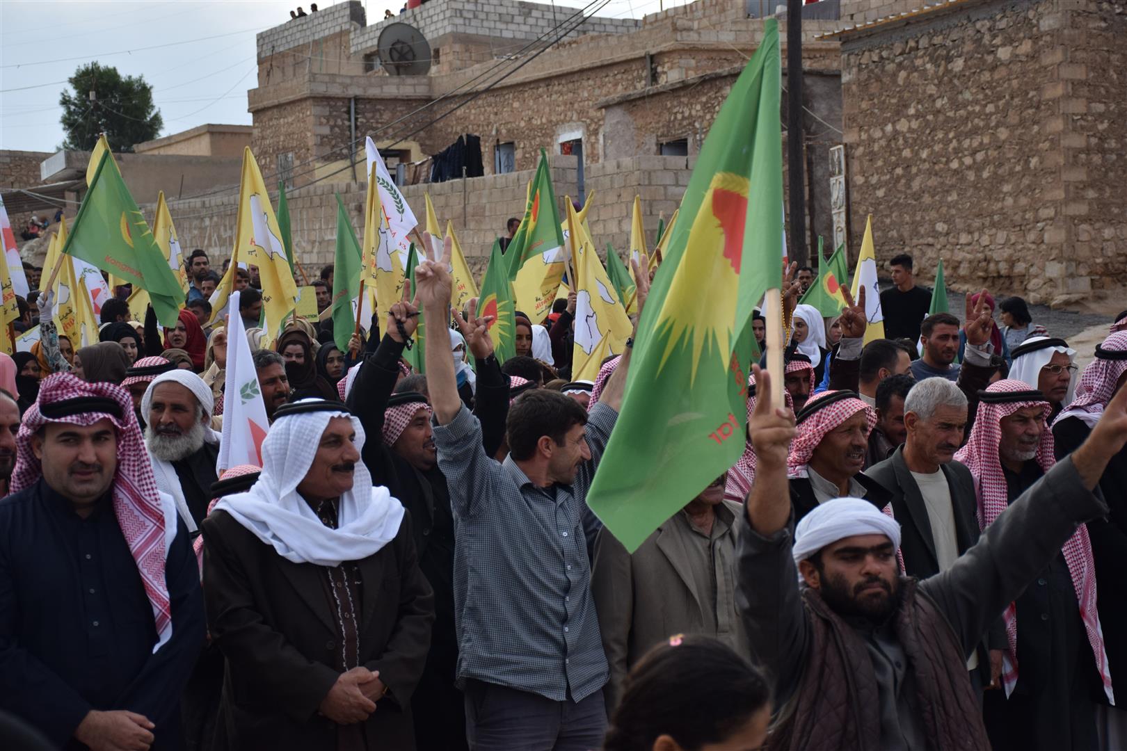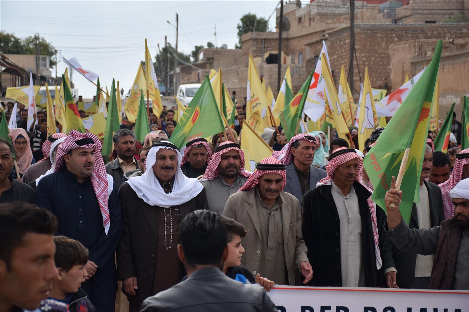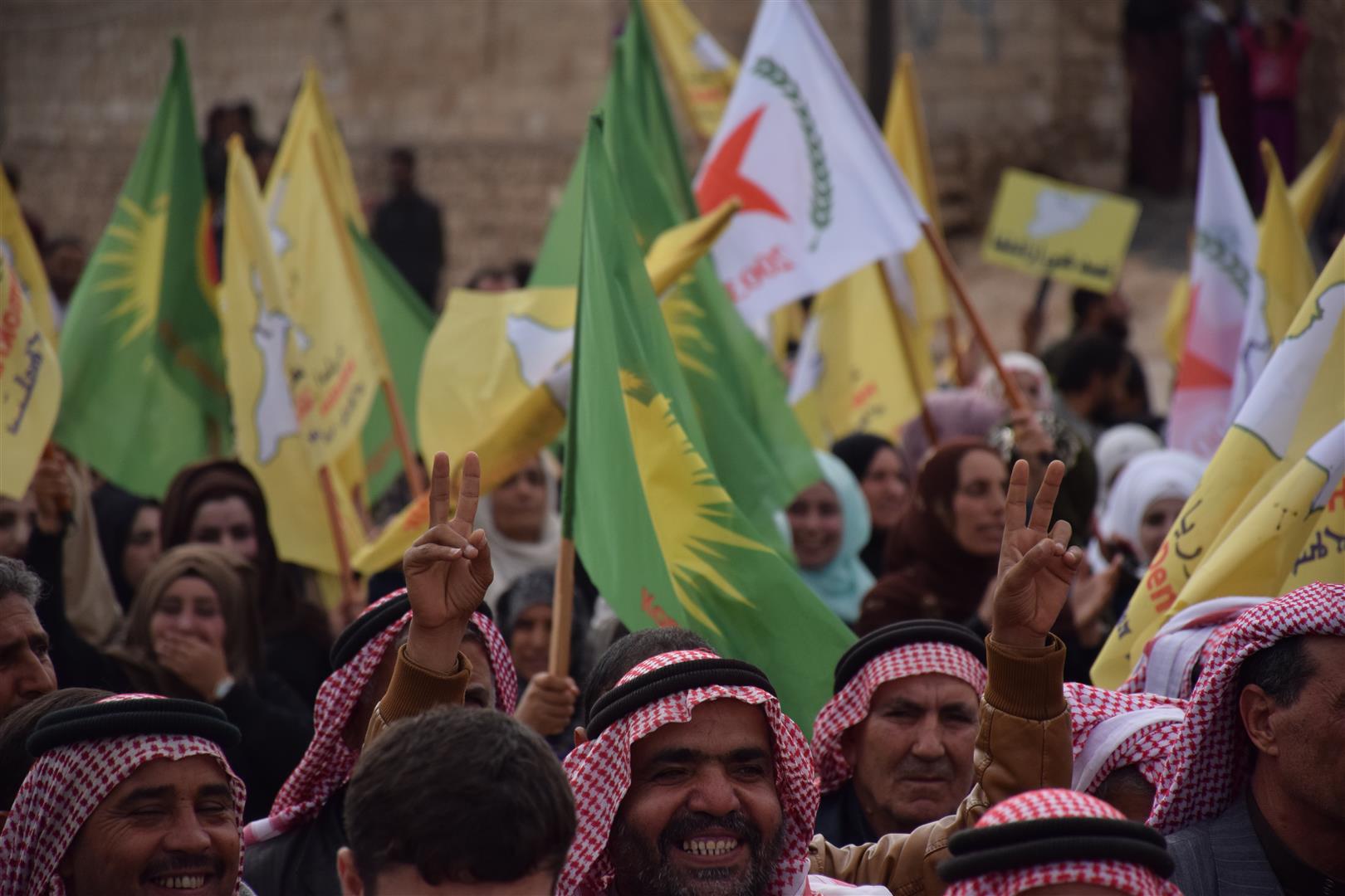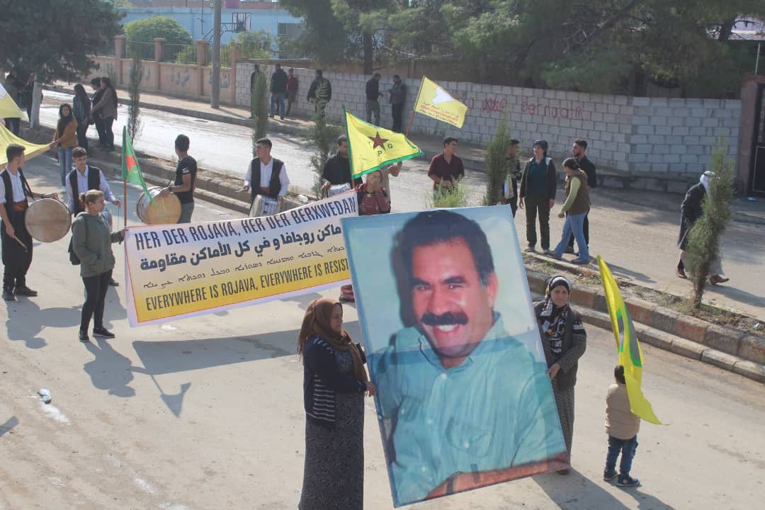 Da ku piştgiriya Roja Cîhanê ya Rojava bikin, bi hezaran şêniyên herêma Dirbêsiyê tevî beşdariya rûspiyên êlên Ereb, partiyên siyasî, saziyên civaka sivîl daketin qadan û meşek li dar xist.