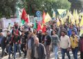 Meş ji pêş Navneda Ciwanên Şoreşger dest pê kir û li tevahî kolanên bajêr ên sereke tevî diruşmên silavkirina berxwedana QSD’ê ya li dijî dewleta Tirk a dagirker, gerî. Li Çerxeriya Şehîd Xemgîn meş veguhrî mîtîngê.