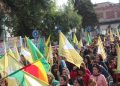 Mîtîng bi dirûşmeyên “Qatil Erdogan” û dirûşmeyên silavkirina berxwedana QSD`ê bidawî bû.