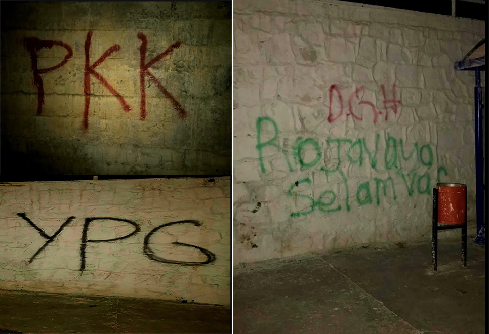 Li navçeya Lefte ya Kiprosê Ciwanên Kurd li dijî êrîşên dagirker bi nivîsên wek “YPG, YPJ, QSD”, “DGH ji bo Rojava silavê xwe dişine” û “PKK” li ser gelek dîwarên navçeyê nivîsandin.