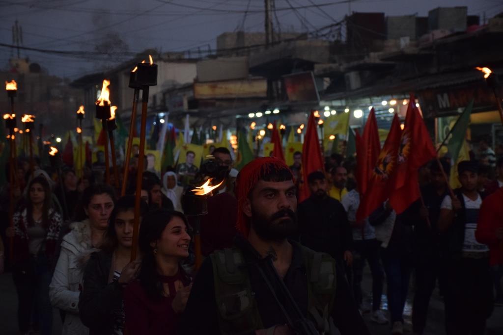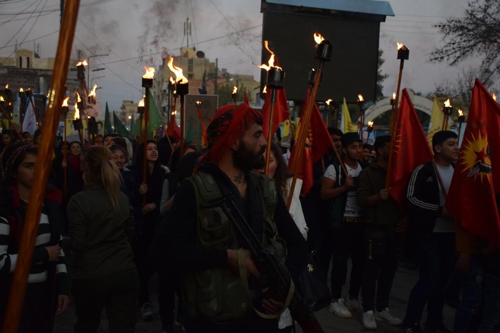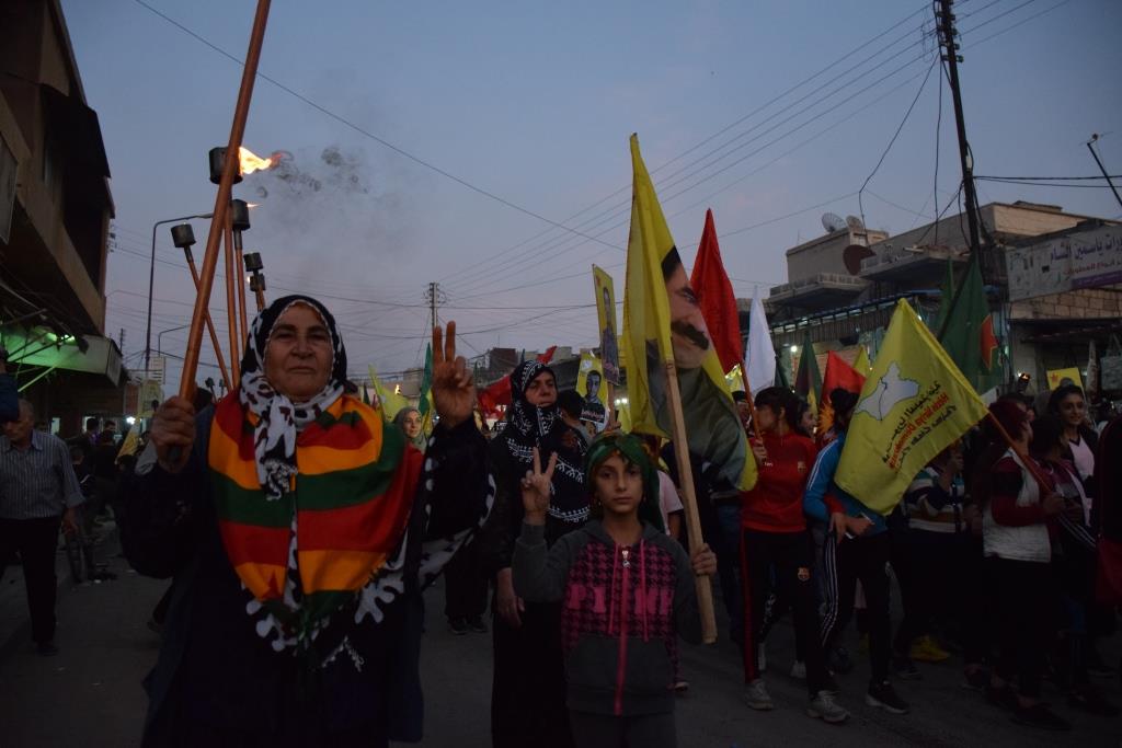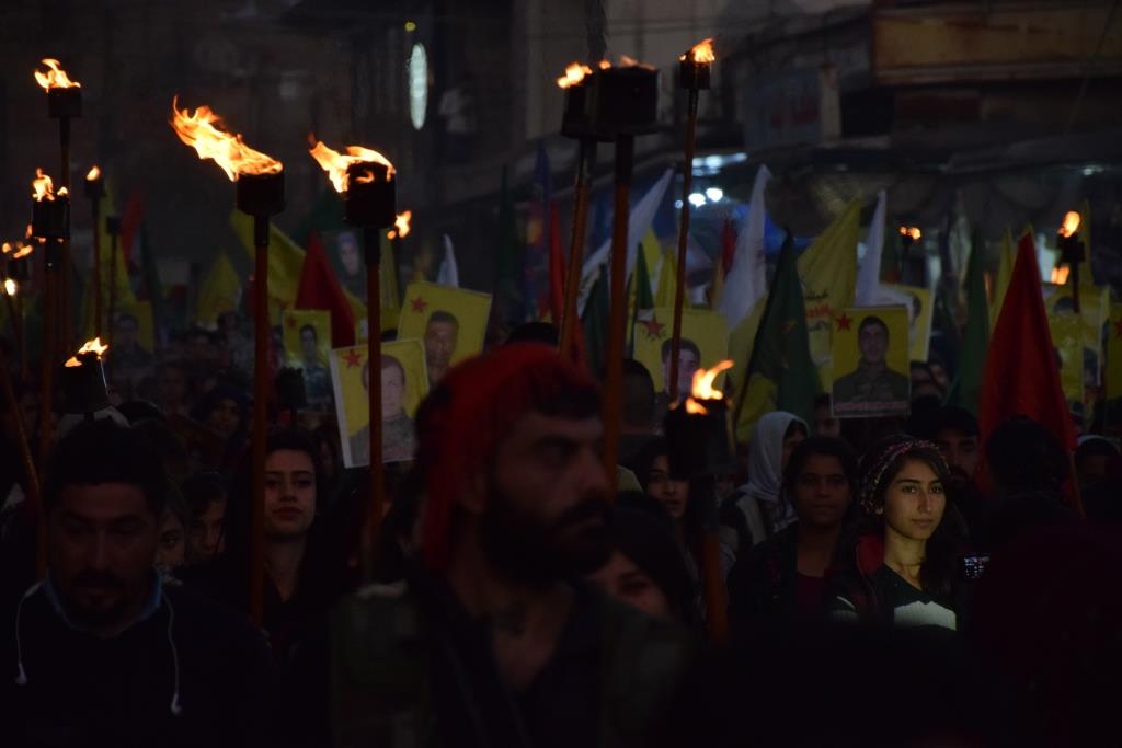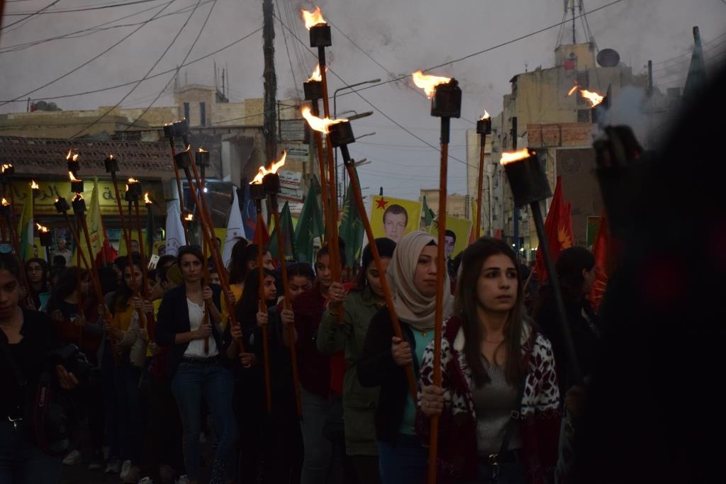 QAMIŞLO – Tevgera Ciwanên Şoreşger a Sûriyê û Yekîtiya Jinên Ciwan li bajarê Qamiloyê li dijî êrişên artêşa Tirk a dagirker û çeteyên wê meşeke bi meşaleyan lidar xistin. Bi sedan ciwan tevlî meşê bûn û ‘Berxwedana Cenga Rojava’ silav kirin.