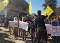 Meş li pêşiya Dêra Marşamonî ya navrasta bajêr veguherî mîtîngê û li wir daxuyaniya hevbeş a mamosteyan a bi zimanên erebî û kurdî hate xwendin.
