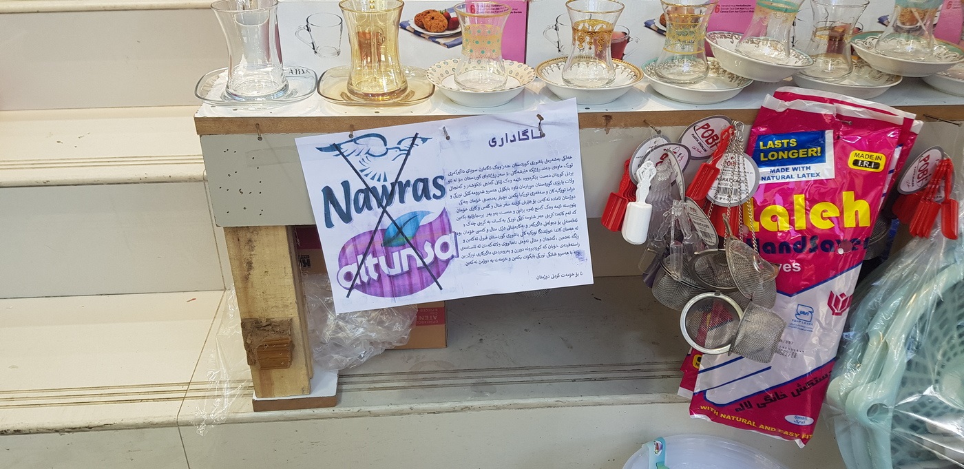 SILÊMANÎ – Li dijî êrîşên dewleta tirk a dagirker li ser Baûr û Rojavayê Kurdistanê pêngava boykotkirina kelûpelên Tirkiyê li Başûrê Kurdistanê didome. Ciwan û xwendekarên zaningeha Silêmaniyê bi belavkirina blavokên boykotê beşdarî vê pêngavê bûn.