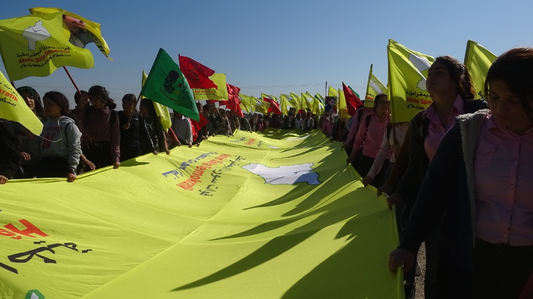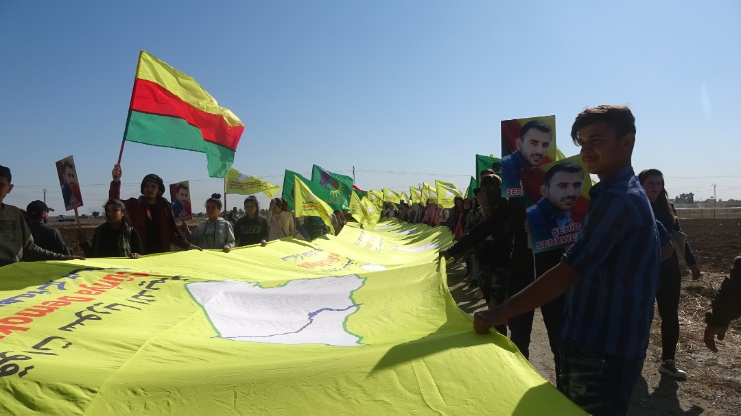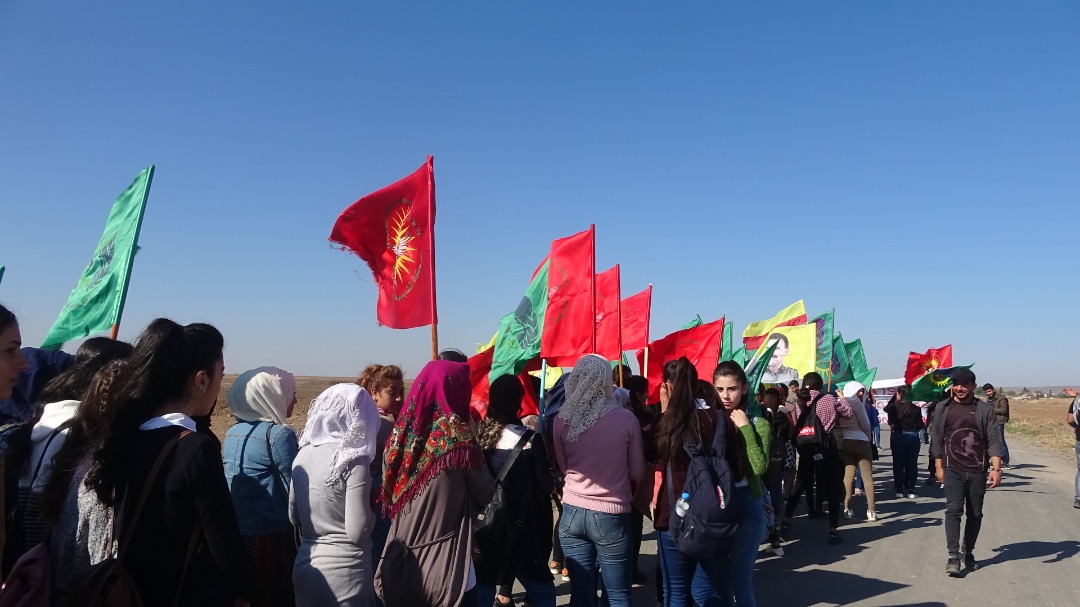 Her wiha beşdaran wêneyên şehîd Serxwebûn, alên QSD’ê, Tevgera Ciwanên Şoreşger, Yekitiya Jinên Ciwan rakirin û dirûşmên silavkirina berxwedana QSD’ê berz kirin.