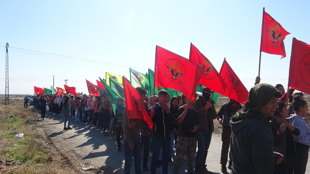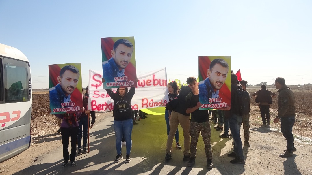 QAMIŞLO – Bi sedan endamên Tevgera Ciwanên Şoreşger ên Sûriyê ji hemû herêmên Cizîrê li xaçerêya gundê Til Cemal a navçeya Girkê Legê cihê şehîd Serxwebûn Elî jê dayîk bûye ku erebeyeke leşkerî ya girêdayî dewriya dagirkeriya Tirkiyê li ser sînor pê lê kir û şehîd bû, kom bûn.