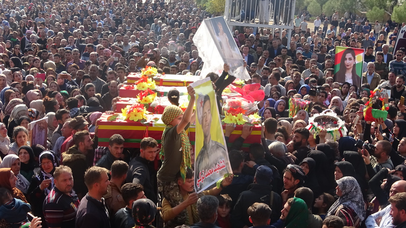 QAMIŞLO – Bi hezaran şêniyên bajarê Qamişlo cenazeyên şervanên QSD’ê Mihemed El-Tirkî (Lewend Qamşlo) ku 9’ê Mijdarê li derdora Serêkaniyê şehîd bûbû û Mûeyd El-Ezîz (Dilgeş Qamişlo) ku 11’ê Mijdarê li derdora Til Temirê şehîd bûbû, her wiha cenazeyên endama ragihandina Şaredariya Xerbî ya Qamişlo Zozan Şêxo û Medîna El-Hisên ku di encama teqînên Qamişlo de 11’ê Mijdarê şehîd bûne, li Goristana Şehîd Delîl Seroxan oxir kirin. Her wiha nasnameya şervanê QSD’ê Şalan Şalan (Elî Qamişlo) ku 28’ê Cotmehê li navçeya Zirganê şehîd bûye, hat eşkerekirin.
