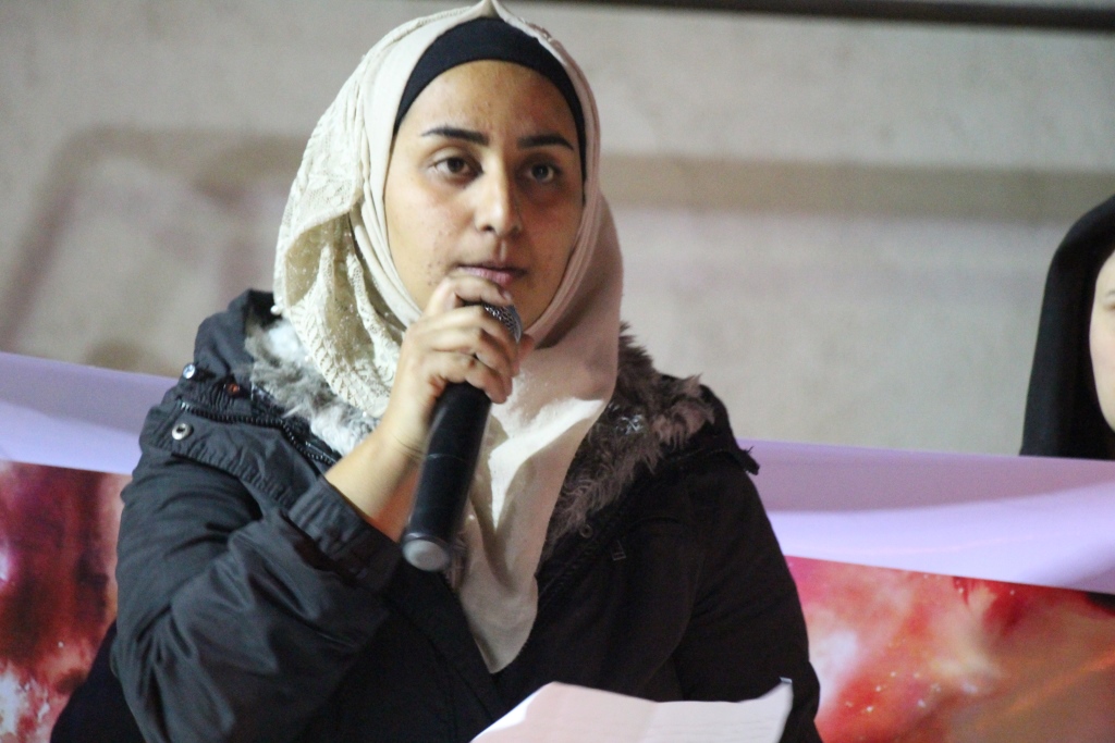 Meş li navenda bajêr rawestiya. Li vir piştî deqeya rêzgirtin rêvebera Meclisa Jinên Ciwan Tehanî Lezîz axivî, diyar kir ku sekna wan ji bo piştevaniya jinên cîhanê ye da ku hemû cûre tundî li dijî jinan bêne rawestandin.
