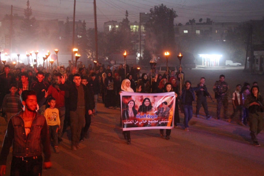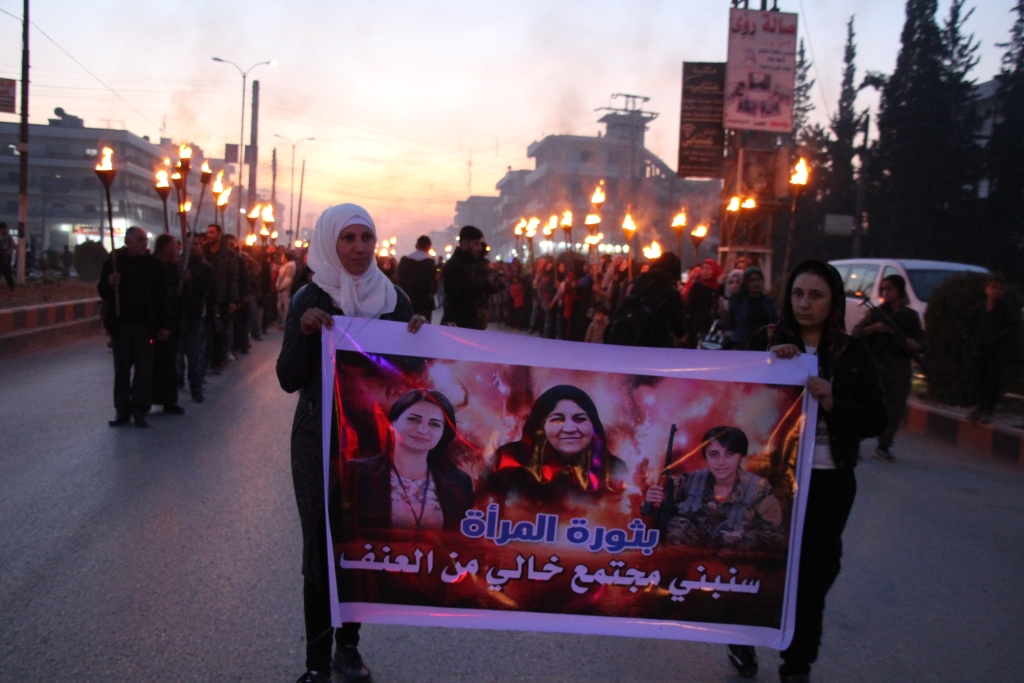 MINBIC – Bi nêzîkbûna 25‘ê Mijdarê Roja Têkoşîna Li Dijî Şideta Li Ser Jinan, bi pêşengtiya jinên ciwan ên Minbicê meşek pêk hat. Bi sedan şênî beşdarî meşê bûn.