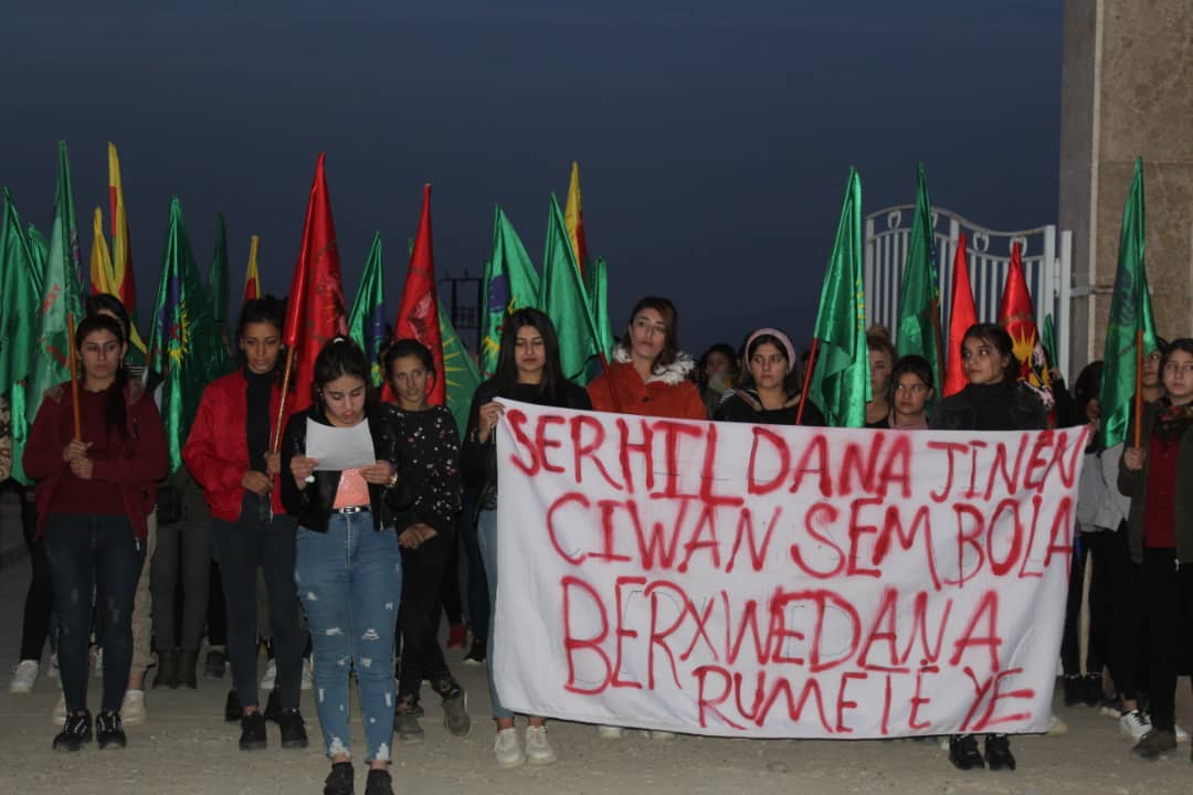 Di çalakiyê de endama rêveber a Yekitiya Jinên Ciwan Evîn Mihemed daxuyanî xwend, got: “Wek Yekitiya Jinên Ciwan di kesayeta şehîd Hevrîn û tevahiyia têkoşerên jin em soza şopandina rêya şehîdan û mezinkirina asta têkoşînê li dijî dewleta Tirk a faşîst û çeteyên wê didin. Hovîtiya Tirkiyê der heqê jinê de li Bakur û Rojhilatê Sûriyê gihaşt asta sûcên şer li dijî mirovahiyê.”
