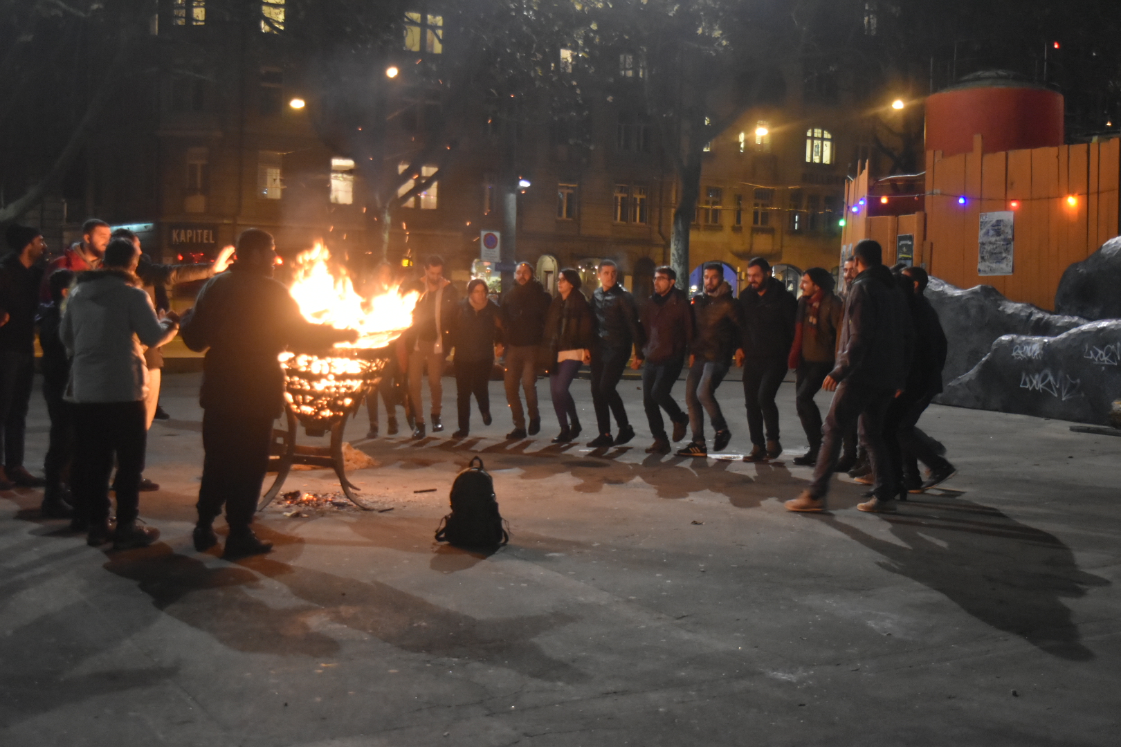 Kurdistanî tevî dostên xwe li meydana Claramatte ya Baselê êvarê li hev kom bûn û bi alên PKK’ê meşiyan. Di meşa bi meşaleyan de dirûşmên Elmanî û Kurdî yên “Bijî PKK” û “Bijî Serok Apo” hatin qîrîn.