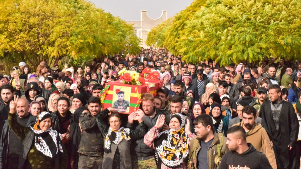 DİRBÊSİYÊ – Bi sedan şêniyên herêma Dirbêsiyê cenazeyê şehîd Omer Berî (Murad Serêkaniyê) ku di berxwedana Serêkaniyê de şehîd bûbû, ji pêşiya Meclisa Malbatên Şehîdan a li navçeyê wergirt û berê xwe da Goristana Şehîd Rustem Cûdî ya li gundê Berkevirê.