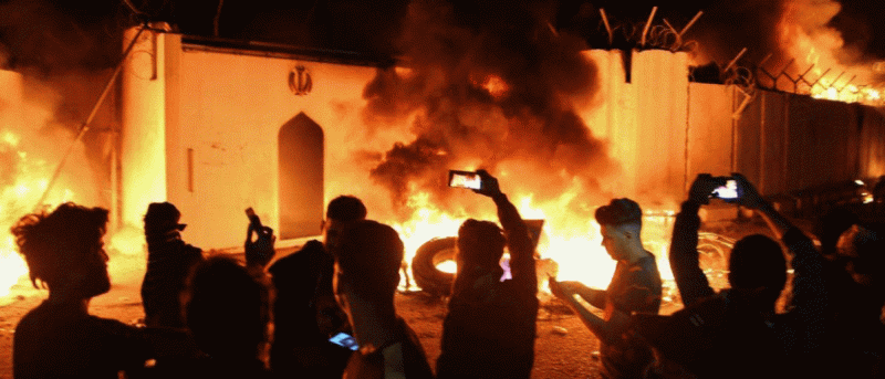 Wezareta Derve ya Îraqê şewitandina konslosê bi tundî şermezar kir. Îran jî bi zimanekî tundî bangî sefîrê Iraqê kir.