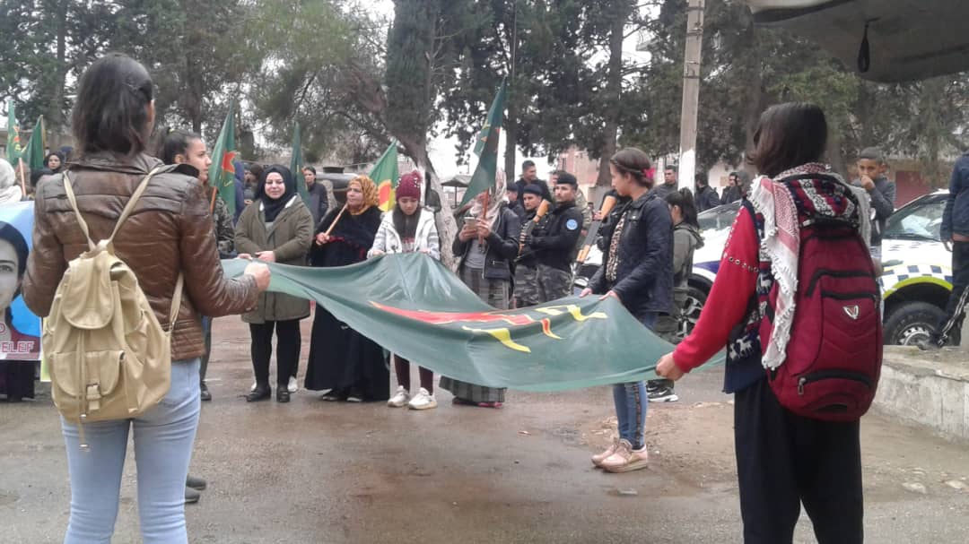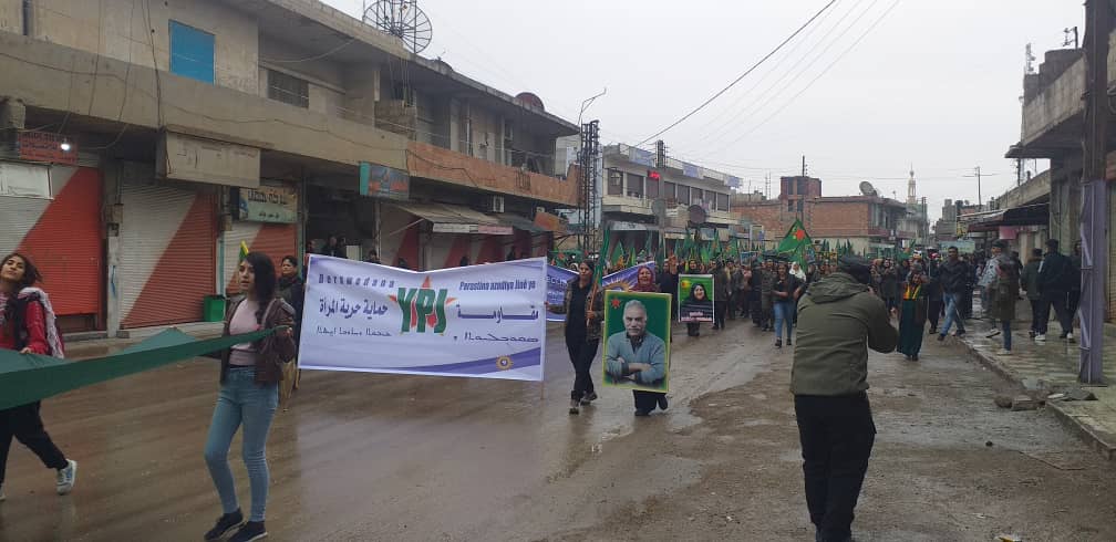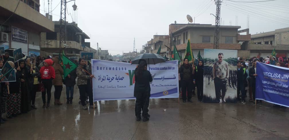 Meş ji pêşiya avahiya Kongreya Star li rojhilatê navçeya Tirbespiyê dest pê kir û di sûka navendî re meşiya û alên YPJ`ê hildan.
