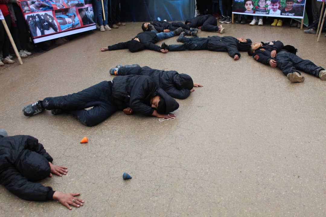 Piştî xwendina daxuyaniyê, zarokên Efrîn û endamên ciwanên Efrînê şanoya komkujiya Til Rifetê ya ku ji hêla dewleta Tirk a dagirker û çeteyên wê di 2’yê Kanûnê de pêk aniye, pêşkêş kir.