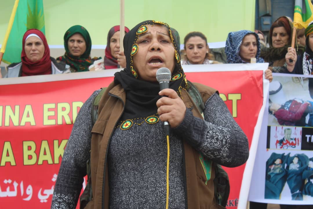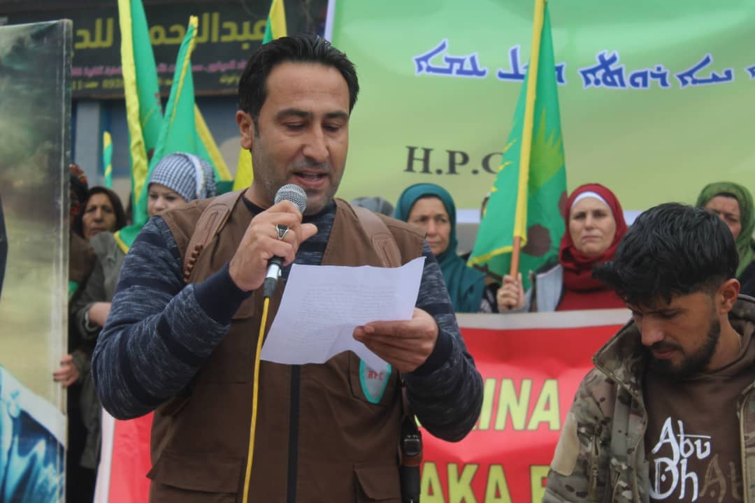 Meş li pêşiya Nexweşxaneya El-Selam veguherî mitîngê. Di mitîngê de ji rêveberên HPC`ê yên kantona Qamişlo Hediya Abdullah û Xelef Hisên axivîn.