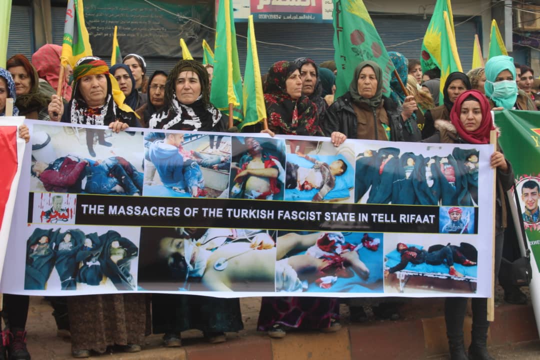 Her wiha komkujiya ku dewleta Tirk a dagirker li dijî zarokên Efrînê ku neçarî koçberiyê bûne û li Til Rifetê hatibûn bicihkirin û bêdengiya navdewletî hat şermezarkirin.