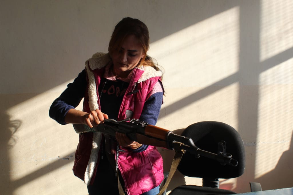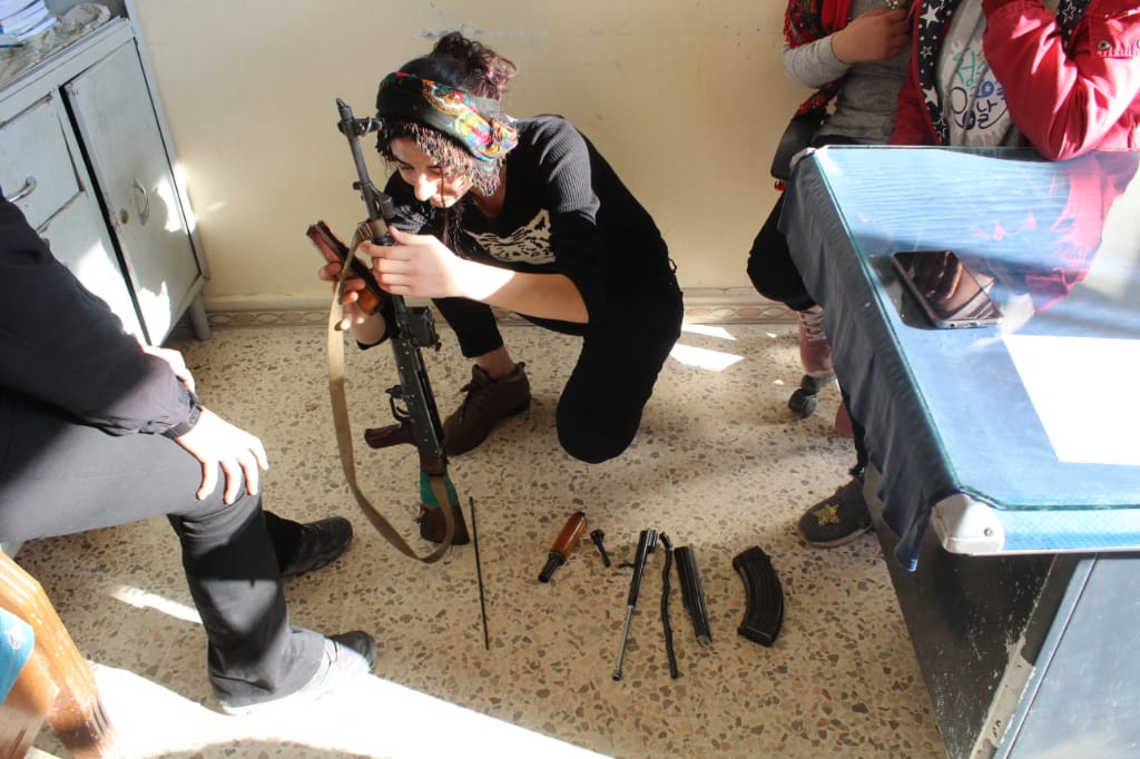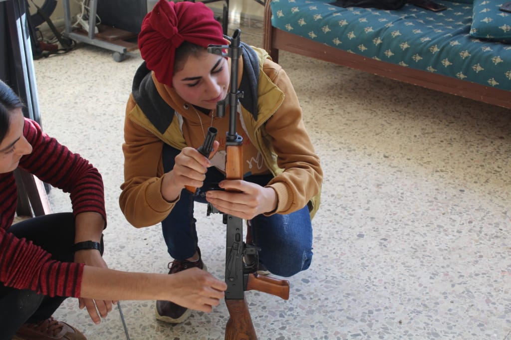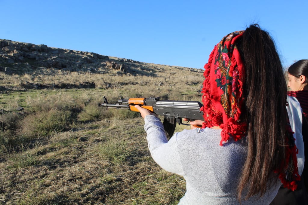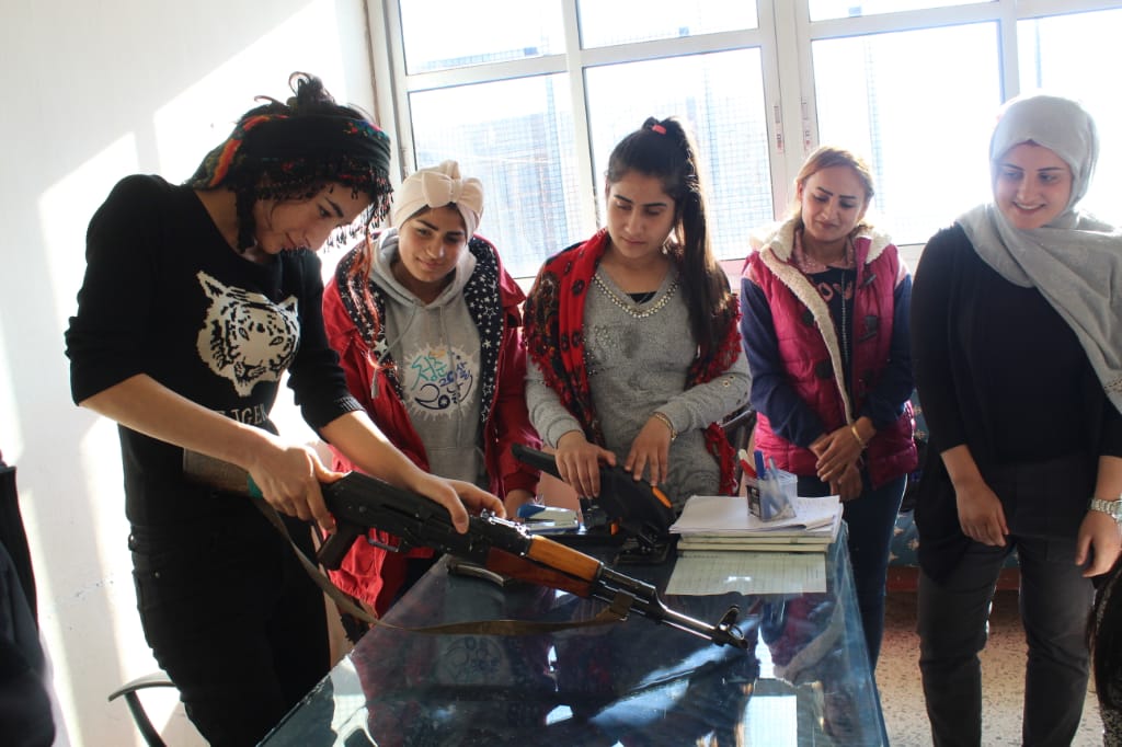 Jinên Ciwan di çarçoveya xweparastinê de ferî vekirin, girtin û bikaranîna keleşê bûn, da ku bikarin li hemberî êrîşên çeteyên tirk parastina gel û axa xwe bikin.