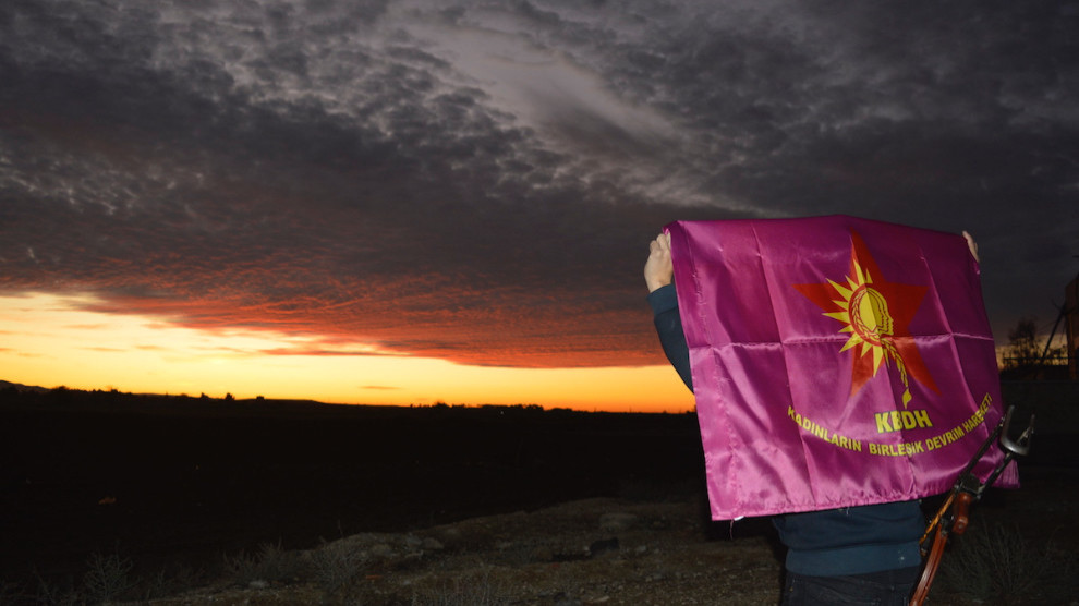 NAVENDA NÛÇEYAN – Di daxuyaniya KBDH’ê de hate gotin, “Em di demeke welê de ne ku nîşan dide, têkoşîna yekbûyî ya jinan, piştevaniya jinan xwn nîne, rastî ye. Em li qadên ku baviksalariyê em lê hepis kirine nahilên; li kolanan, li çeperan, li berxwedanê, li bendan deng vedidin. Her ku deng vedidin em azad dibin û her qada ku em xwe digihînin wê deverê azad dikin.”