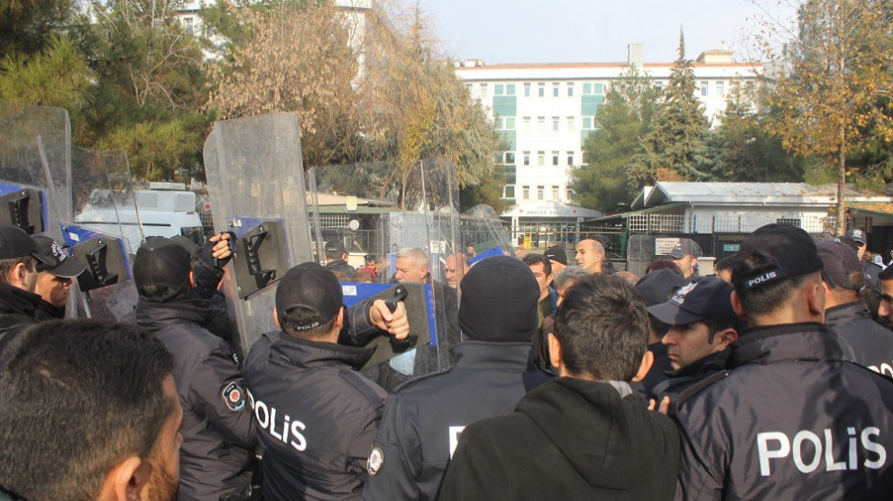 Koma ku polîsan dor li wan girtin bi çepik û tilîliyan dorpêç û girtin protesto kirin. Di vê navberê de polîsan rê neda ku rojnamevan dîmen û wêne bikişînin û bi lêdanê ew ji qadê dûr kirin. Hinek mokrofonên rojnamevanan man di deste HDP’iyan de.