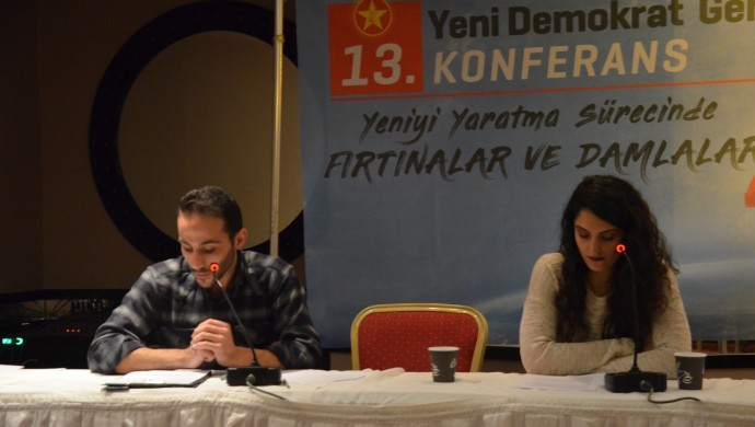 STENBOL –  Ciwanên Demokrat ên Nû (YDG), bi drûşmeya “Di pêvajoya avakirina nûbûniyê de bahoz û dilop” 13’emîn konferansa xwe li Otela Taksîm Hîll’ê dar xist. Ciwanan di konferansê de li ser çawaniya pêşxistina têkoşîna bindestan rawestiyan. Di konferansê de nûnerên Partizan, Konfederasyona Karkerên Ewropa yên ji Tirkiyeyê (ATİK), Federasyona Komeleyên Ciwanên Sosyalist (SGDF), Hêzên Şoreşger ên Ciwanan (Dev Guç), Tevgera Xwendekarên Sosyalist (SOH), Nûnerên Kovara Koz, Berxwedêrê Zeytinburnu Kenan Gongurdu û gelek kesên din amade bûn. Konferansê bi rêzgirtinê dest pê kir. Li ser navê YDG’ê Elif Kaya, diyar kir ku YDG’ê di encama salên dirêj de danehevên girîng kom kirine û wiha got: “Ev dîrokek e. Dikare ji van cerebeyan gelek ders derxe.” Kaya, anî ziman ku li ser vê axê dixwazin bi milyonan karkeran birçî bihêlin, xizan bihêlin û teslîmî teslimî destê xizaniyê bikin. Dixwazin fatûra wê bi karker û kedkaran bidin razandin.