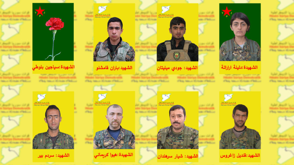NAVENDA NÛÇEYAN – Navenda Ragihandin û Çapemeniyê ya QSD’ê bi daxuyaniyeke nivîskî nasnameyên 8 şervanên QSD’ê û YPJ’ê ku di Berxwedana Rûmetê de şehîd bûbûn, eşkere kirin.