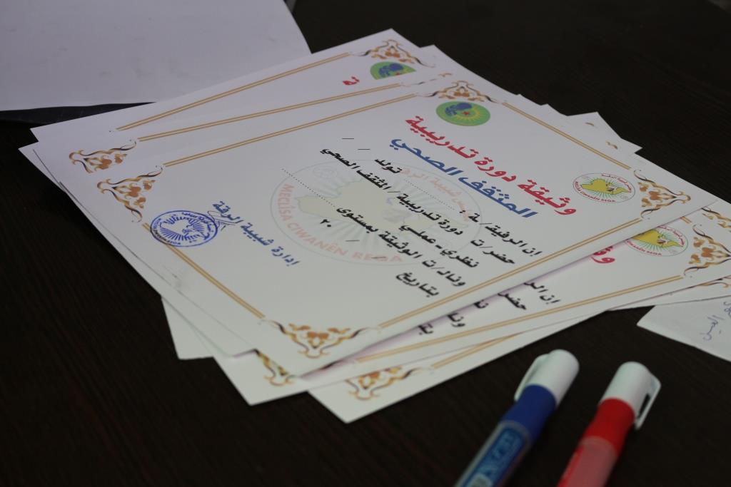 Di dawiya dewreyê de, perwerdekaran wesîqeya bidawîkirina dewreyê ku ji Meclisa Ciwanan a Reqayê ya girêdayî Meclisa Sivîl a Reqayê de hatiye erêkirin, wergit. Her wiha perwerdekaran piştrast kir ku amade ne dest bi xebatê bikin.