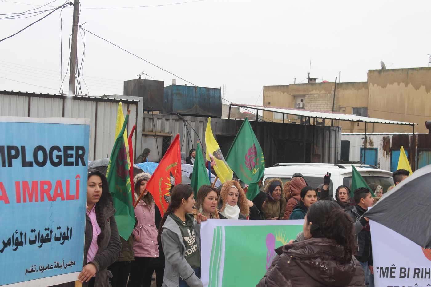 AMÛDÊ – Bi pêşengtiya Ciwanên Şoreşger û Yekîtiya Jinên Ciwan bi sedan şêniyên navçeya Amûdê bi meşekê tecrîda girankirî ya li ser Rêberê Gelan Abdullah Ocalan şermezar kirin û azadiya wî daxwaz kirin.