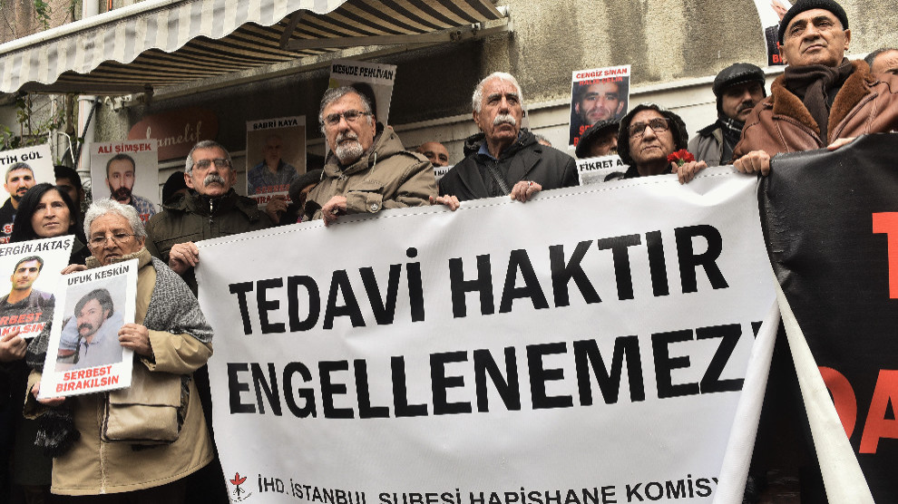 STENBOL – Komîsyona Girtîgehan a Şûbeya Stenbolê ya Komeleya Mafê Mirovan (ÎHD) ji bo ku balê bikişîne ser rewşa girtiyên nexweş cara 408’an Rûniştina F’yê pêk anî. Çalakî li ber avahiya ÎHD’ê çêbû, polîsên Tirk dora çalakgeran pêçan. Wekîlê HDP’ê Mûsa Pîroglu jî di nav de nûnerên gelek partiyên siyasî û rêxistinên girseyî yên demokratîk hazir bûn.