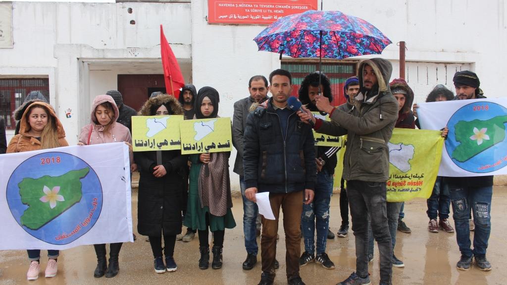 QAMIŞLO – Ciwanên Meclisa Sûriya Demokratîk têkildarî hewldanên Tirkiyê yên leşkerkirina ciwanên Sûriyê da ku bi rêya wan planên xwe pêk bînin daxuyanî da. Daxuyanî bi amadebûna bi dehan endamên meclisê li ber avahiya Meclisa Ciwanên Şoreşger a navçeya Til Hemîsê ji aliyê nûnerê Partiya Sûriya ya Pêşerojê ya şaxê navçeyê Mihemed El-Deham ve hate xwendin.