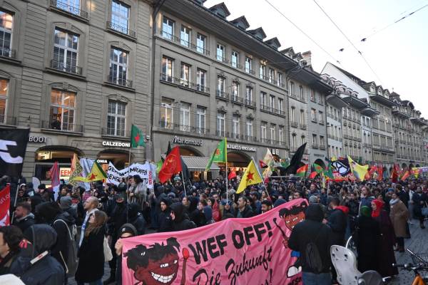 BERN – Li bajarokê Davos ê Swîsreyê di navbera dîrokên 21-24’ê Çile de tê plankirin ku Forma Aborî ya Cîhanê were lidarxistin. Serokkomarê Tirk Recep Tayyîp Erdogan û Serokê DYE Donald Trûmp ku wê li Davosê beşdarî Forûma Aborî ya Cîhanê bibin, politîkayên şer û komkujiyê yên Trûmp û êrîşên dagirkeriyê yên dewleta Tirk a dagiker yên bi ser Bakur Rojhilatê Sûriye û Şengalê hate protestokirin.