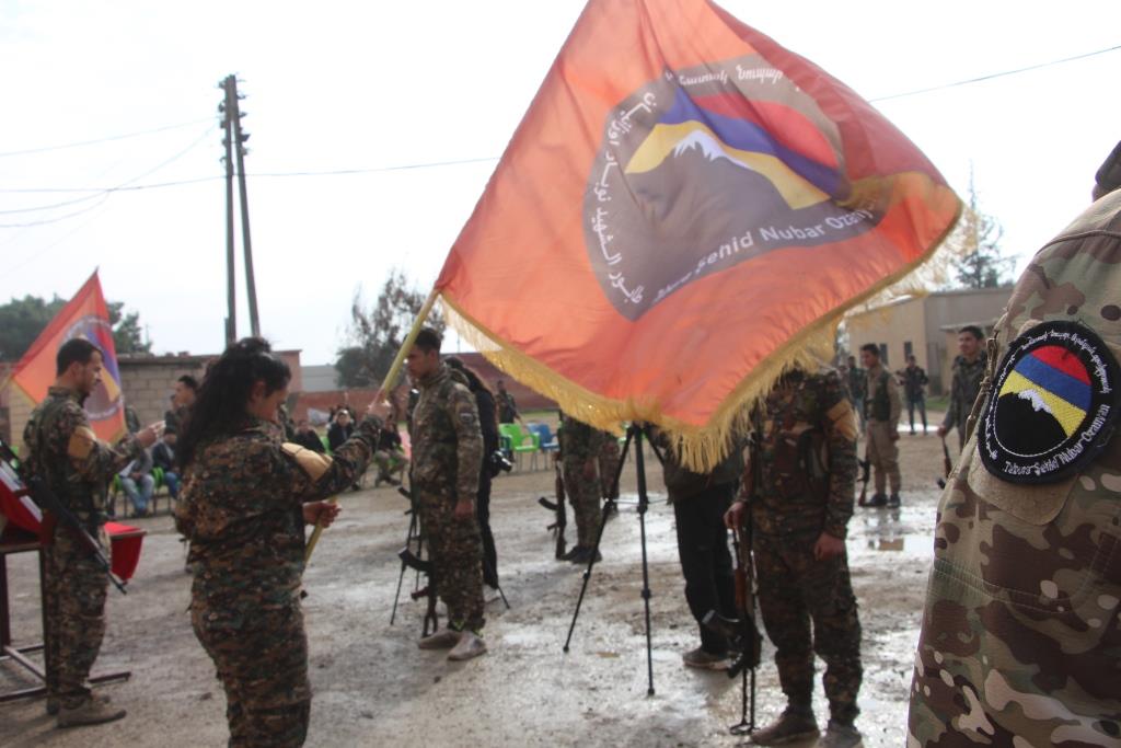 HESEKÊ – Bîranîn bi merasîma leşkerî dest pê kir. Paşê fermandarê tabûra Şehîd Nûbar Ozanyan, Nûbar Melyonyan bi Ermenî û Kurdî axivî.