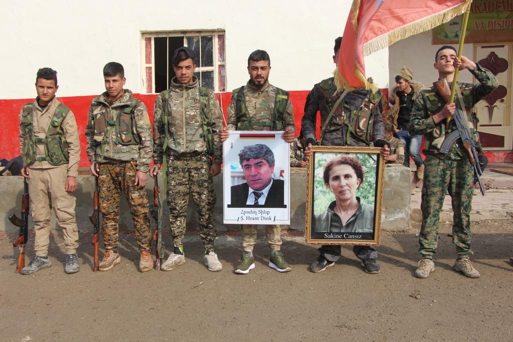 Şervana jin ya endama Tabûra Şehîd Nûbar Ozan, Sosin Serkîs ji tekildarî salvegera qetilkirina Hrant Dînk anî ziman ku li ser armanca tinekirina Ermeniyan Hrant Dînk hat qetilkirin û got: “Me hêz û girîngiya rêxistinbûna xwe ji têkoşîn û berxwedana şehîd Hrant Dînk wergirt. Ew jî bû bingeh ji me re û di gavavetinên me de cih girt. Dewleta Tirk a dagirker îro jî li Bakur û Rojhilatê Sûriyeyê li dijî gelan komkujiyan pêk tîne. Li ser tolhildana şehîd Hrant Dînk û Sakîne Cansiz em ê dewleta Tirk a dagirker û çeteyên wê ji warên xwe derxinîn û wan tine bikin. Heya dawî em ê li ber xwe bidin û li ser şopa şehîdan em ê bimeşin. ”