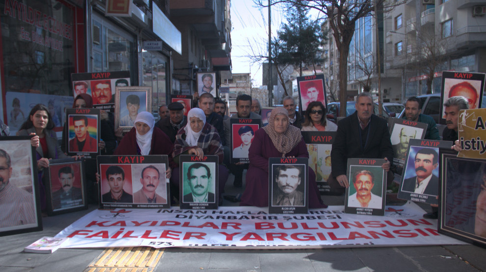 NAVENDA NÛÇEYAN – Şaxa Komeleya Mafê Mirova (ÎHD) a Amedê û Xizmên Windayan di hefteya 573’yemîn de çalakiya heftane ya ji bo windayan li ber avahiya ÎHD’ê li dar xist. Gelek kes beşdarî çalakiyê bûn. Serokê Şaxa ÎHD’ê Abdullah Zeytûn di çalakiyê de axivî û diyar kir ku ew dixwazin kujerên windayan demildest werin dîtin û werin cezakirin. Zeytûn da zanîn ku çalakiya xizmên windayan û Dayikên Şemiyê li her deverê hatine qedexekirin û got: “Em ê li gel malbat û dayikên xwe li her deverê ji bo edalet pêk were, winda werin dîtin û kujer bên darizandin wan aciz bikin.”
