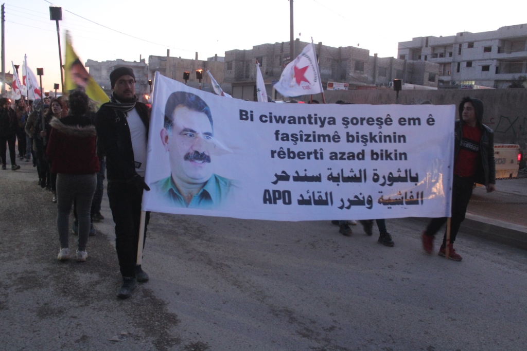 KOBANÊ – Meclisa Ciwanan a Partiya Yekitiya Demokratîk (PYD) ya herêma Firatê ji bo şermezarkirina  komploya navnetewî ya li dijî Rêber Abdullah Ocalan meşek bi mişeleyan li dar xistin.